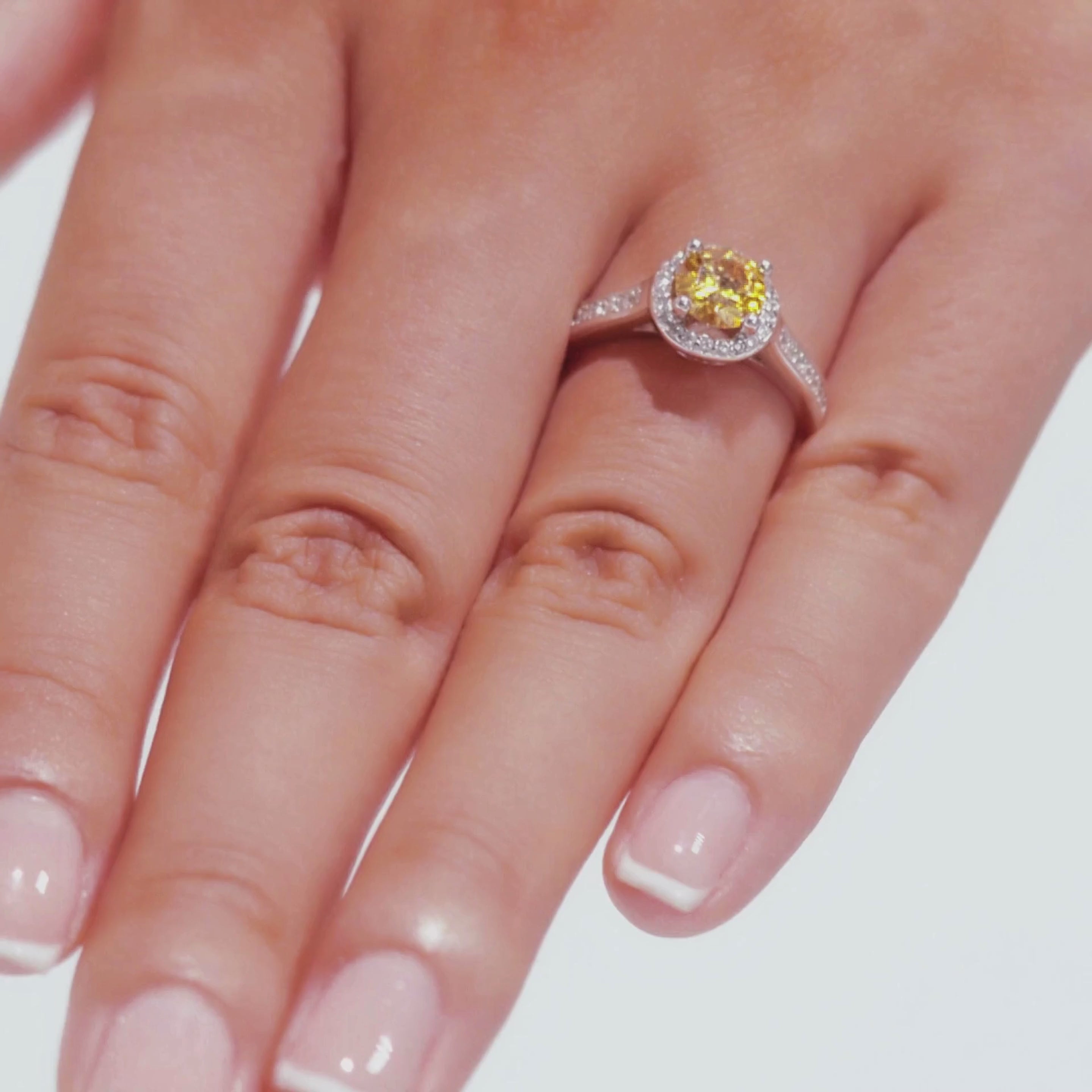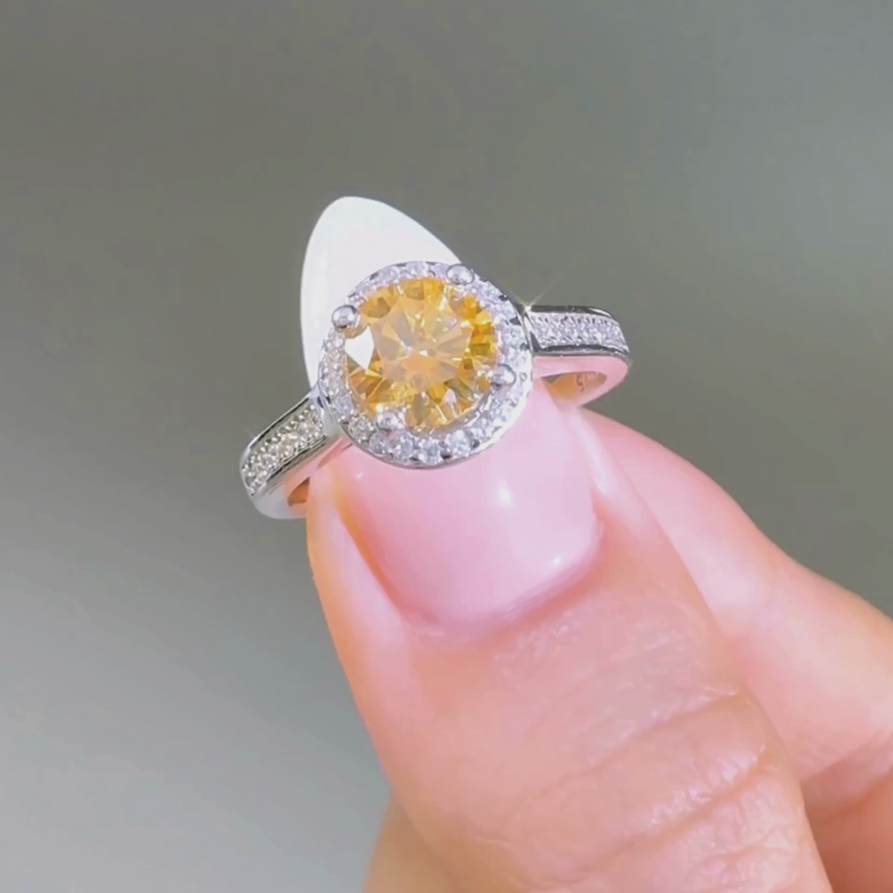 The Divine features a captivating yellow round-cut moissanite ring that embodies timeless elegance and ethical craftsmanship.
