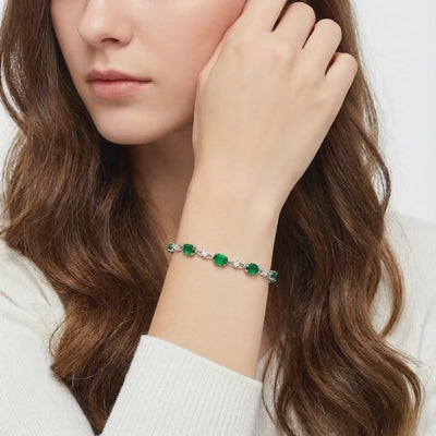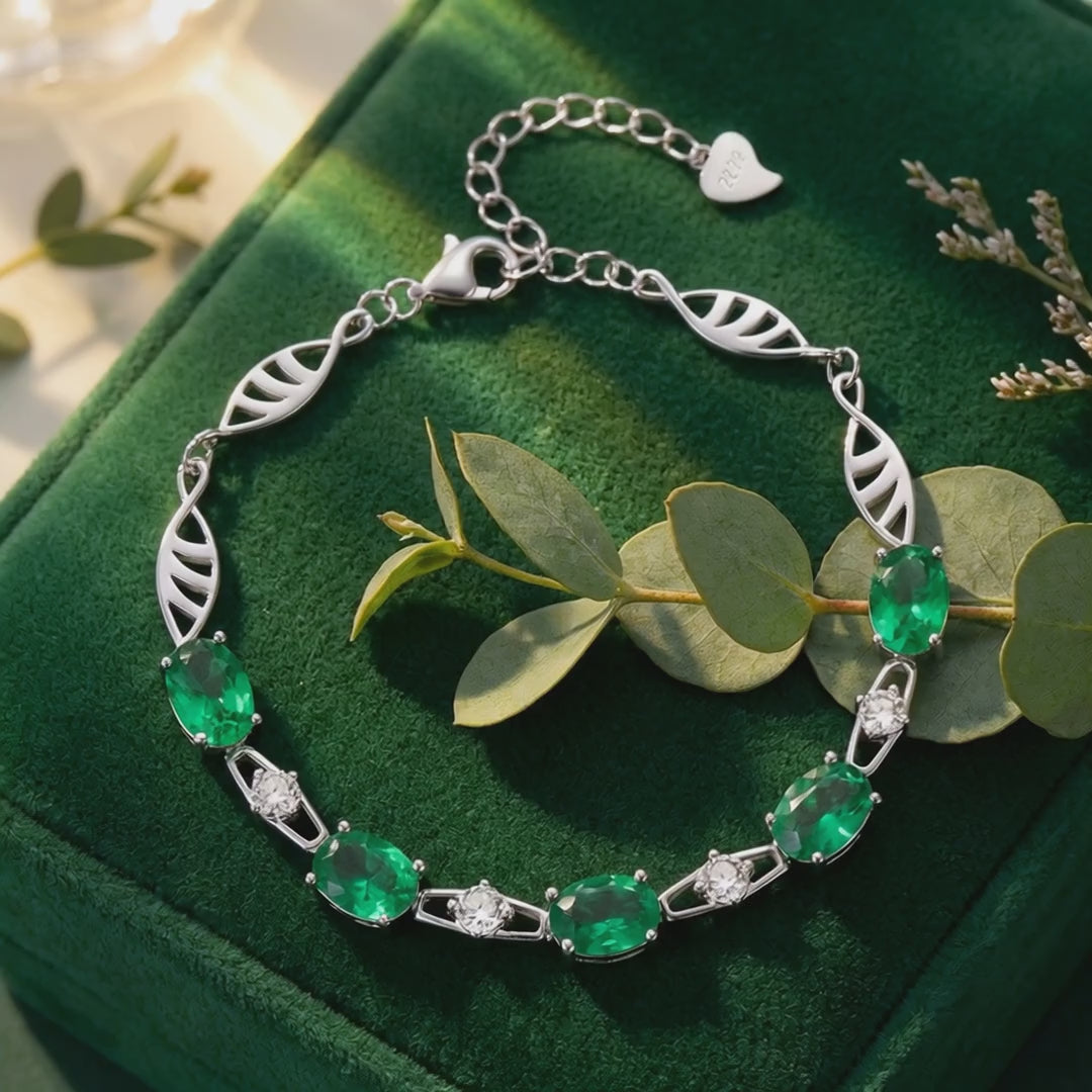 Nature rarely delivers perfection; mined emeralds are often clouded by inclusions and inconsistent coloring. We engineered the solution. This May birthstone bracelet features precision-cut Simulated Emeralds, color-calibrated to achieve the vivid, deep green profile of museum-grade gems without the scarcity tax.