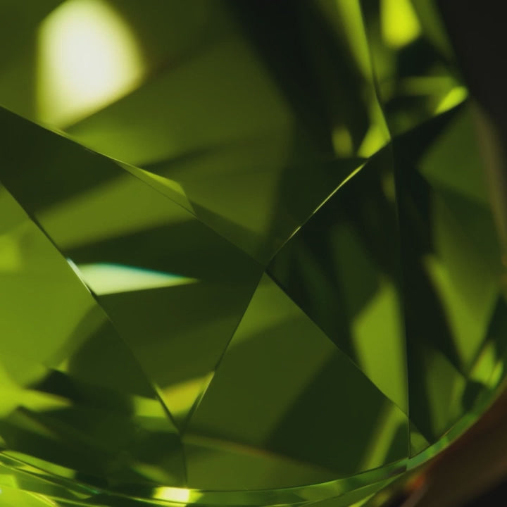 We hand-select every gemstone for deep, saturated olive-green hues with the electric lime glow the ancients called the "Evening Emerald," then precision-facet each stone to maximize light return and eliminate windowing. You see the difference the moment it catches light — day or night.