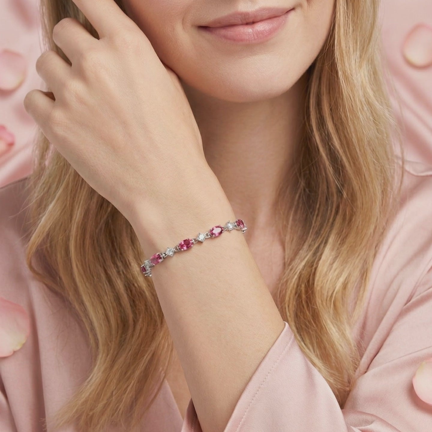 Nature rarely delivers a bracelet with perfectly matched stones. Mined tourmaline varies wildly in saturation and clarity. We engineered the uniformity. This tennis bracelet features Simulated Pink Tourmaline, color-calibrated to a vivid raspberry brilliance and precision-cut for maximum light return.