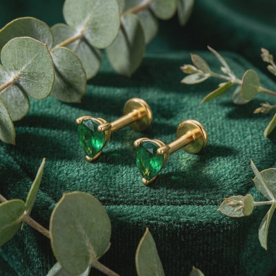 Nature rarely produces an emerald without visible inclusions or cloudiness. These earrings feature Simulated Emerald, engineered to capture the ideal depth and saturation of a museum-grade gemstone. Each stone is precision-cut into a sharp pear shape to maximize light refraction and visual depth.
