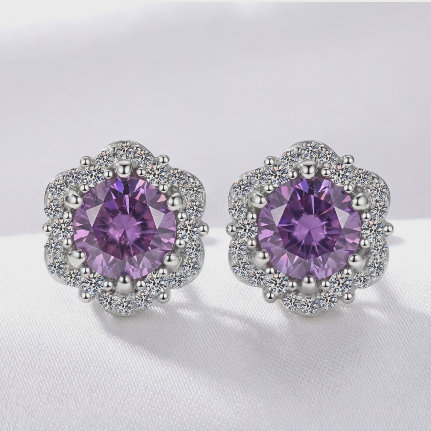 Mined amethyst is often plagued by cloudy inclusions and uneven color zoning. These stud earrings feature color-calibrated Simulated Amethyst, engineered to match the coveted deep violet saturation of museum-grade gems. Each stone is precision-cut from A5 Grade material for maximum refractive performance and fire.