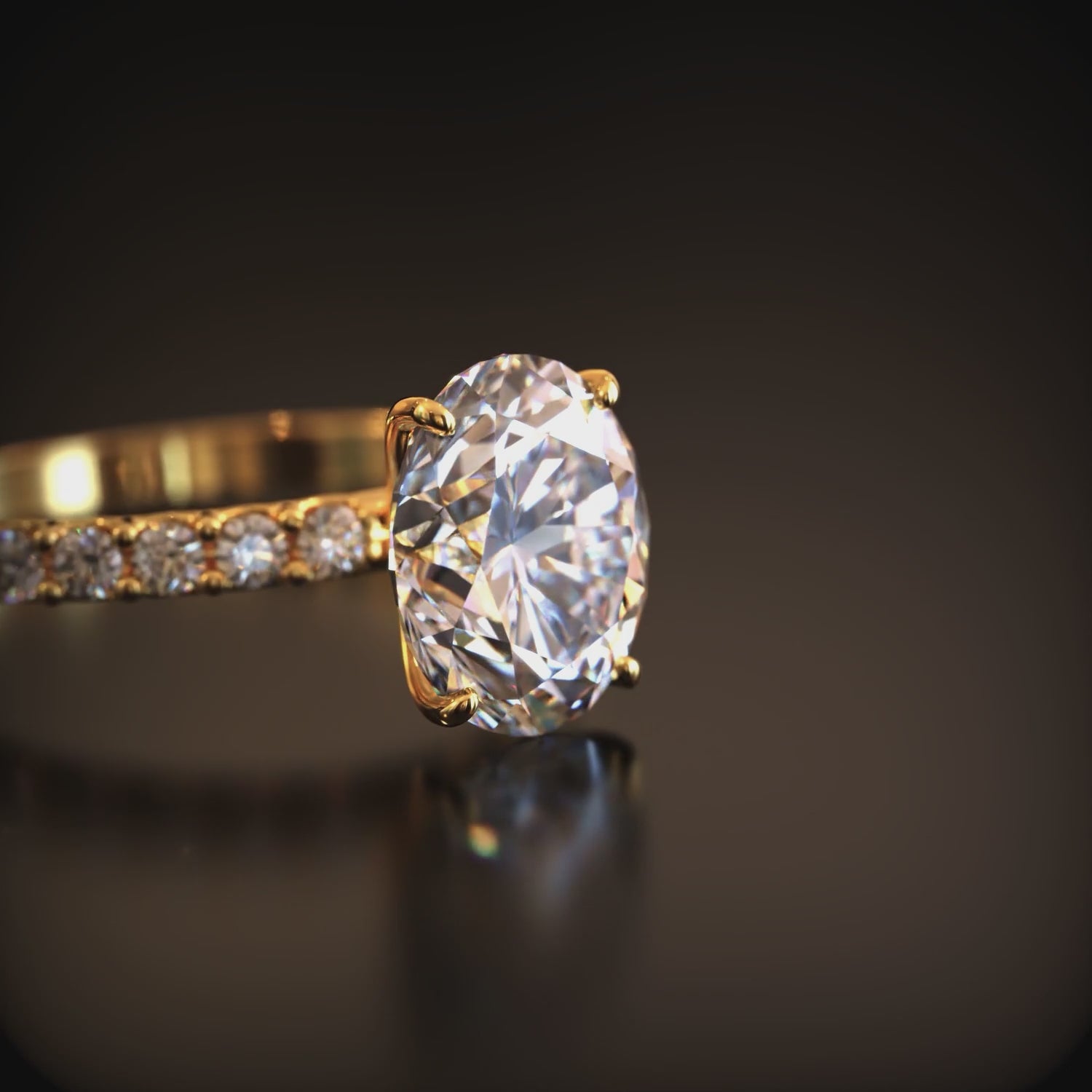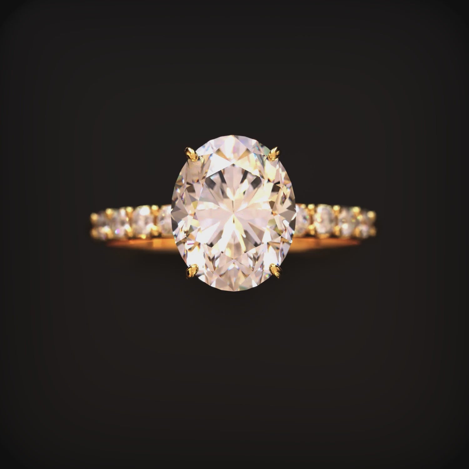- CT Size: The Fiora features a 2 CT Oval Cut Moissanite. The side stones are round shape. We accept custom requests if you wish for a different CT size. Check the details above for specifics on this ring.