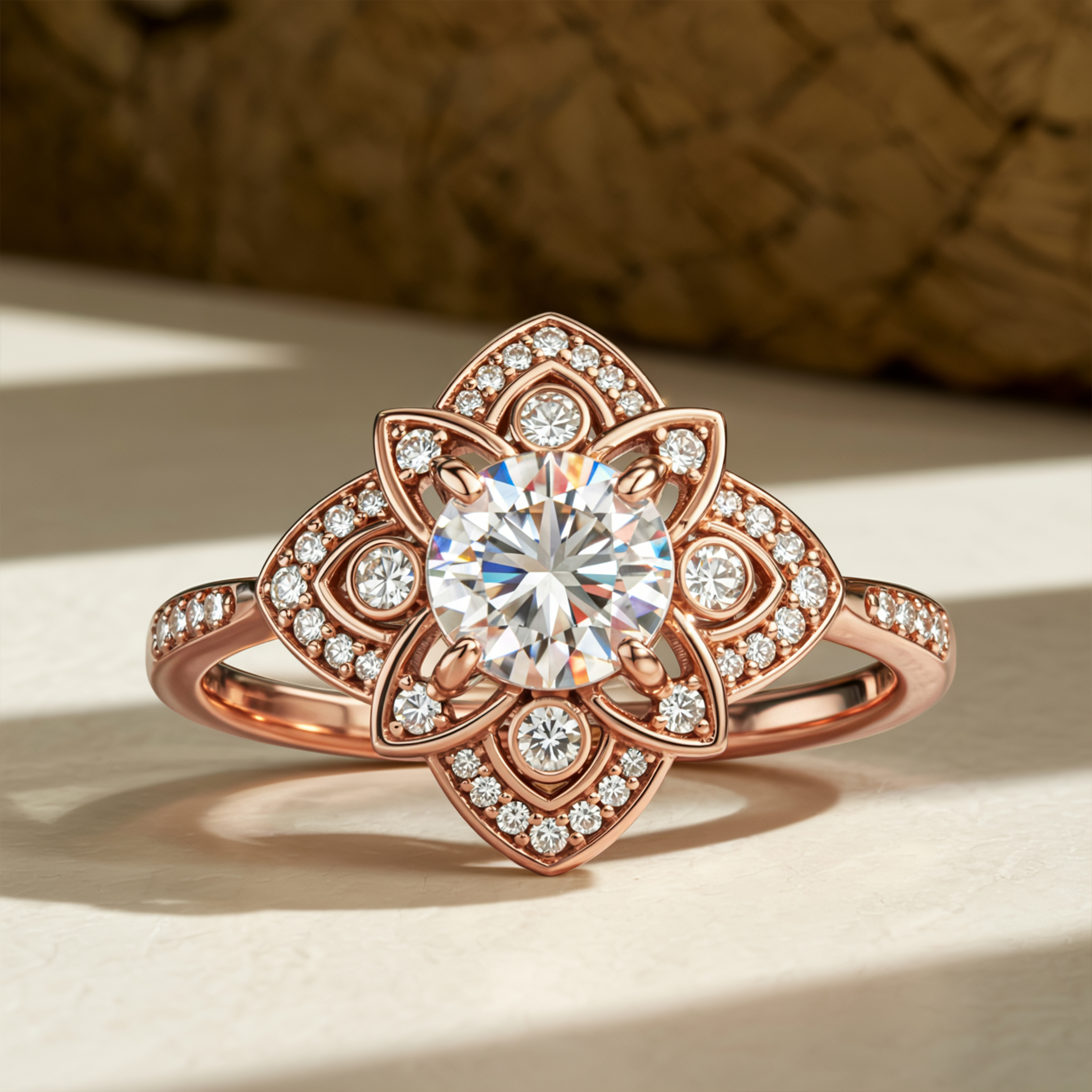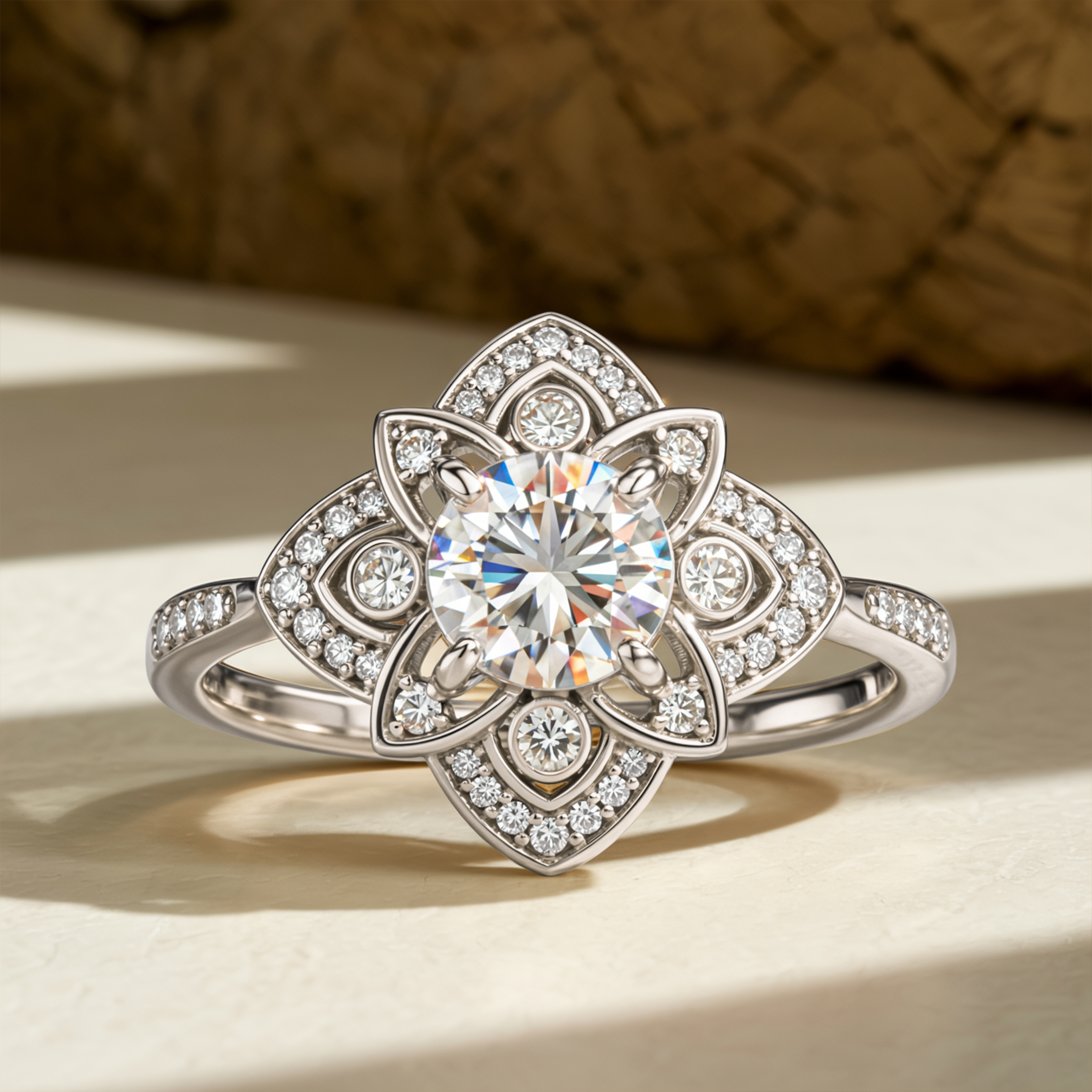 - Its vintage twisted band, adorned with side stones, offers a unique and romantic design that stands out.