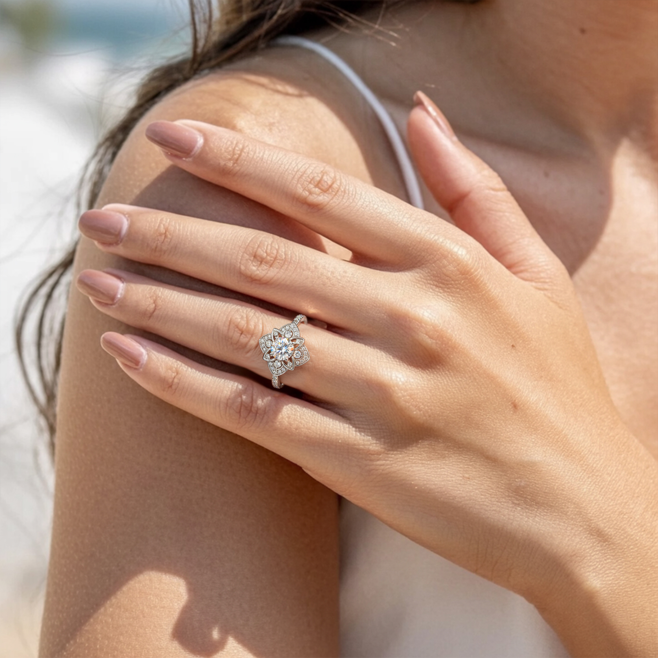 Discover The Genevieve, a ring that captures the spirit of bygone eras with its timeless beauty and brilliant sparkle. It’s an exquisite piece designed to be cherished for generations.