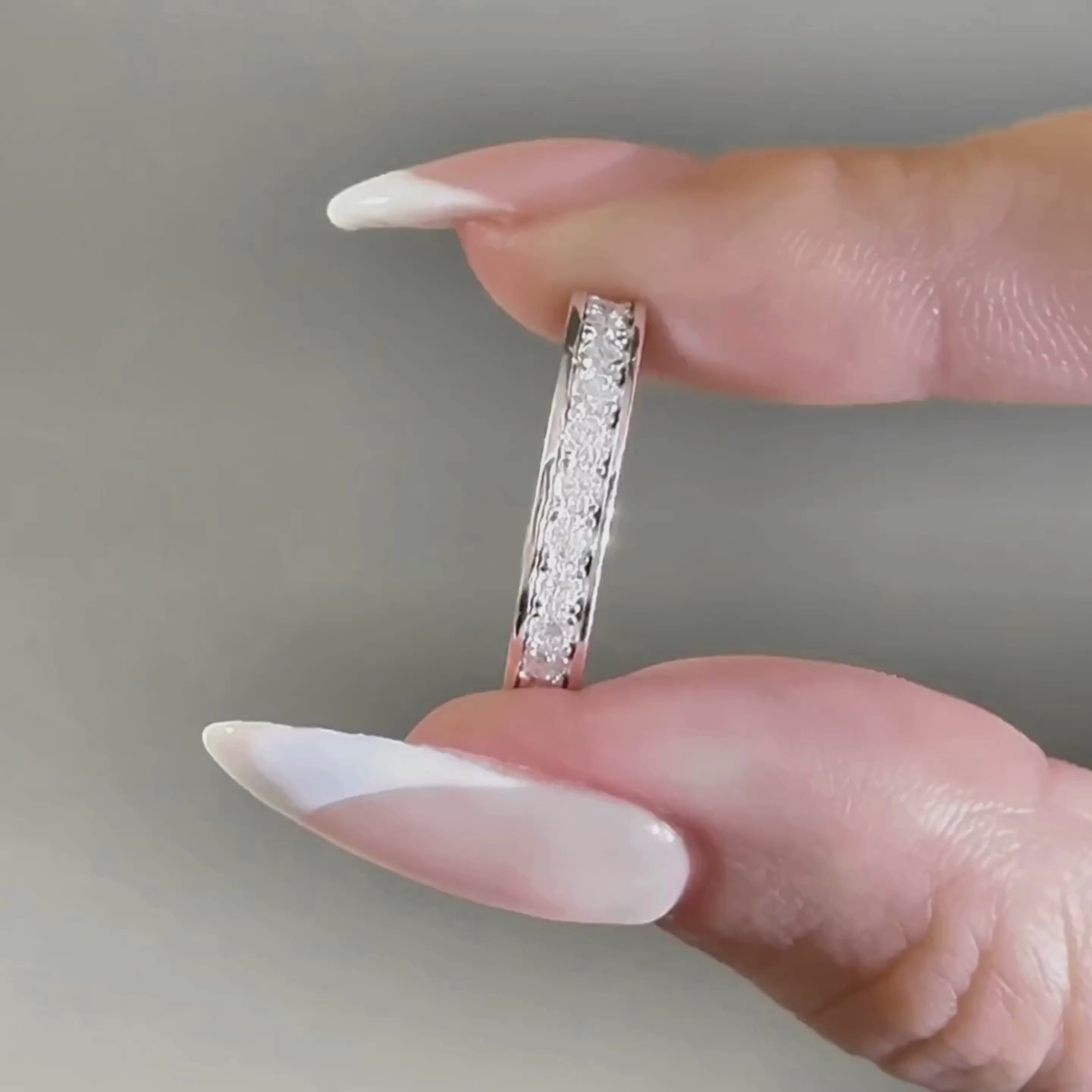 The Harmony features a timeless design with round-cut moissanite stones set in a sophisticated channel prong setting. This enhances the brilliance of each stone while ensuring durability and security, perfect for daily wear.