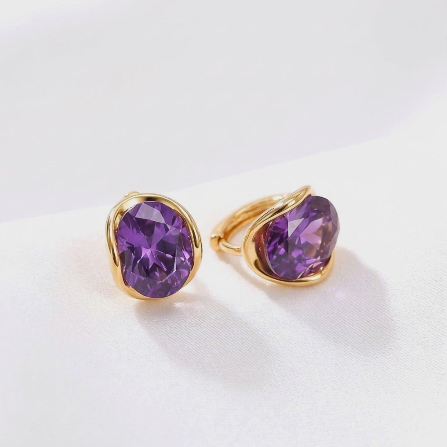Nature rarely delivers the deep, flawless purple found in museum-grade Amethyst. We engineered it. These hoop earrings feature precision-cut Simulated Amethyst stones, color-calibrated to the absolute ideal of the February birthstone. Each stone is faceted from A5-grade material to ensure maximum light return and a rich, velvety saturation that remains consistent in any lighting.