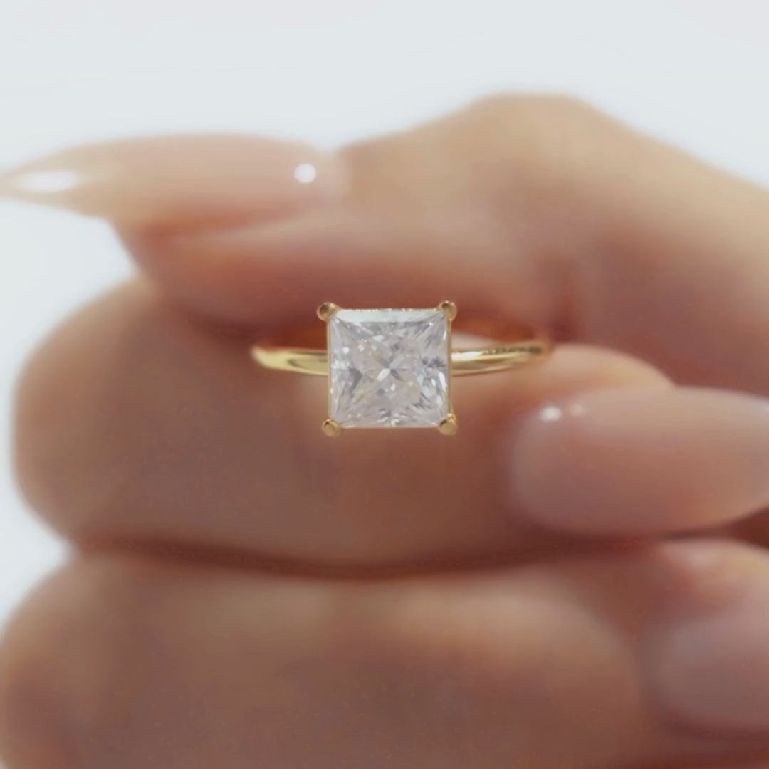 The Isabella features a stunning princess-cut moissanite stone set in a pristine prong setting on a band of premium S925 Sterling Silver. Its understated design ensures a perfect blend of luxury and simplicity, ideal for everyday wear and special occasions.