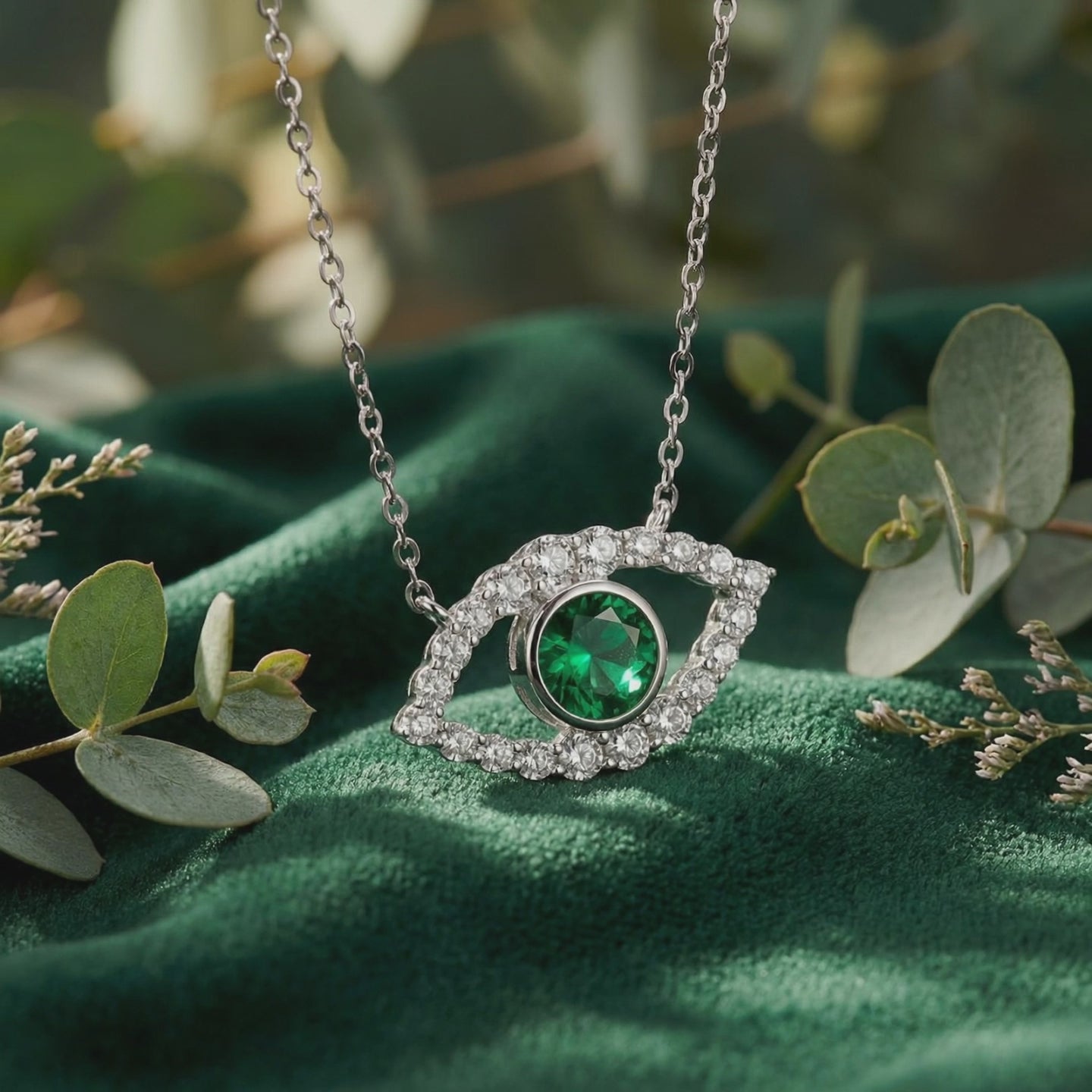 Nature rarely produces an emerald without visible inclusions or cloudiness. This necklace features a precision-cut Simulated Emerald, color-calibrated to match the ideal "Deep Forest" green profile. We engineered this stone to deliver museum-grade clarity and rich saturation without the five-figure mining markup.