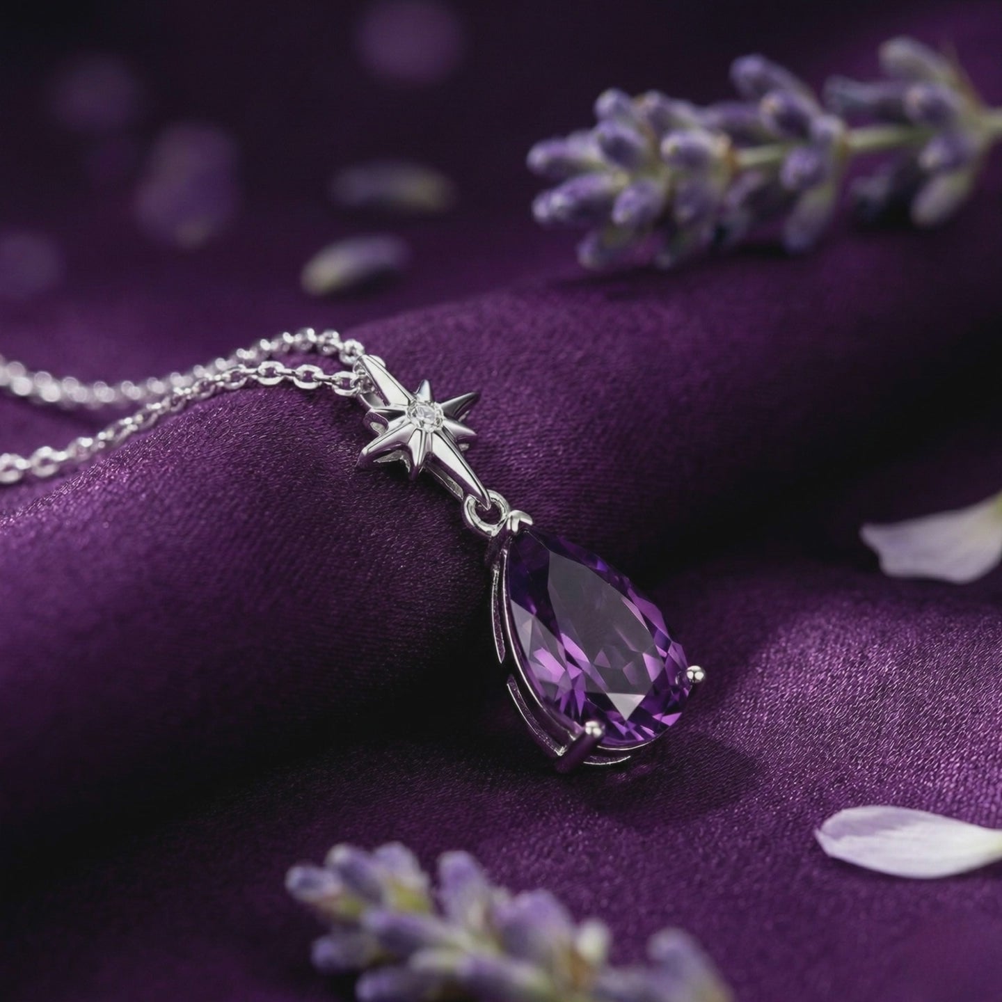 Capturing the deep, velvety violet hues of twilight, The Isla Pendant is a study in regal elegance and geological wonder. This exquisite necklace centers on a breathtaking 2.5-carat Natural Amethyst, precision-faceted in a teardrop Pear Cut that maximizes light return and eliminates windowing, ensuring a vibrant, saturated purple fire that dances with every movement.