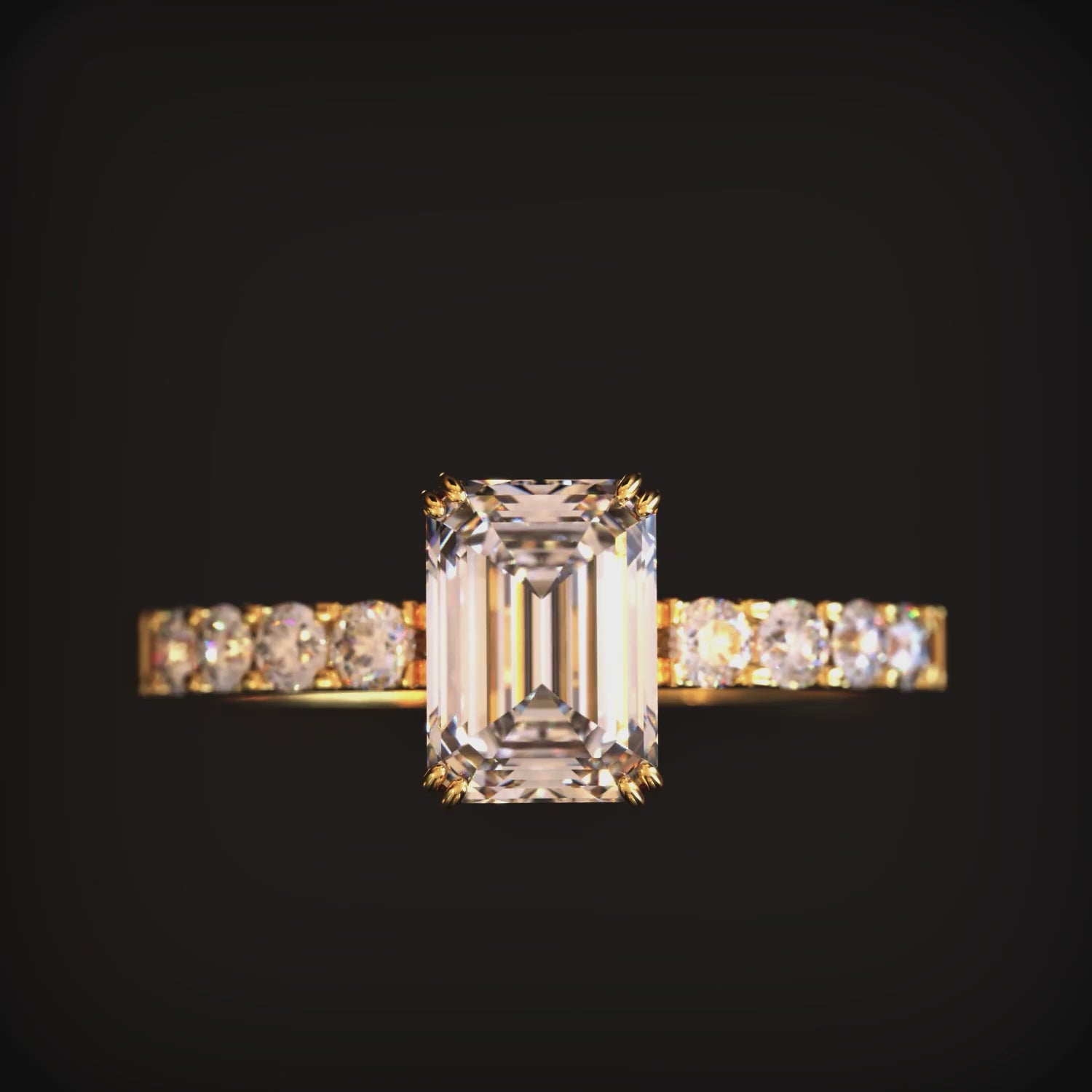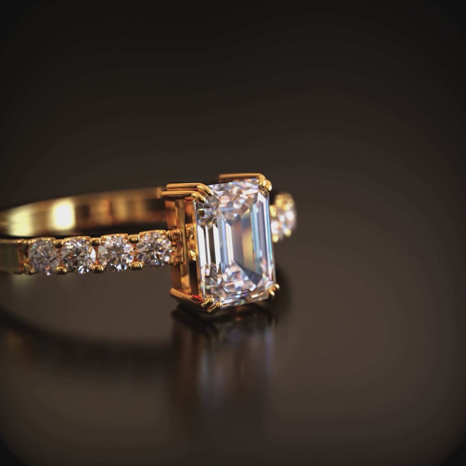 - Stone: Emerald cut moissanite gemstone