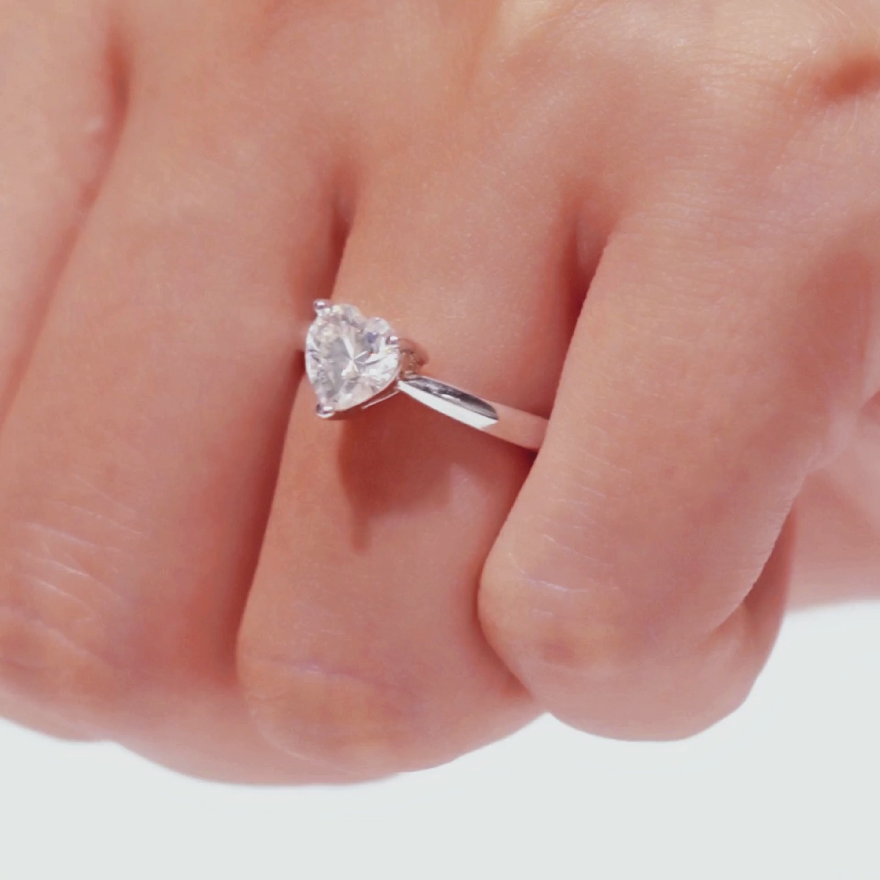 This heart-cut moissanite stone sparkles with unmatched clarity and brilliance. This exquisite gem is designed to catch the light from every angle, creating a breathtaking display of radiance.