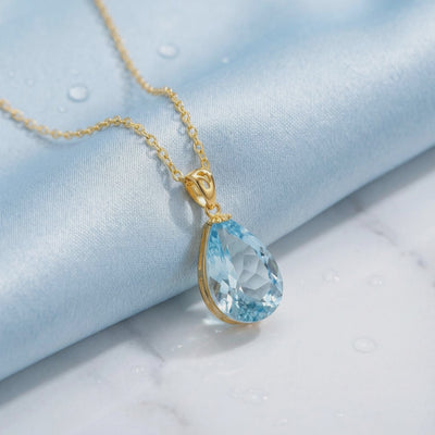 Nature rarely delivers perfection, so we engineered it. Mined aquamarine is frequently pale, cloudy, or filled with inclusions. This March birthstone necklace features a high-performance Simulated Aquamarine, color-calibrated to achieve the ideal, serene light blue saturation found in museum-grade specimens. Every stone is precision-cut to a pear-shaped teardrop for maximum light return and refractive fire.