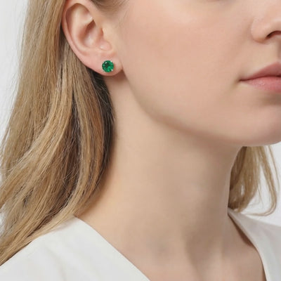 Nature rarely delivers the deep, vivid green of a museum-grade emerald without significant inclusions and internal flaws. These stud earrings feature high-performance Simulated Emerald stones, color-calibrated to the absolute ideal. We engineered the perfect saturation that nature couldn't consistently produce, providing the visual impact of an heirloom for a fraction of the cost.