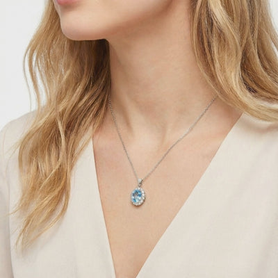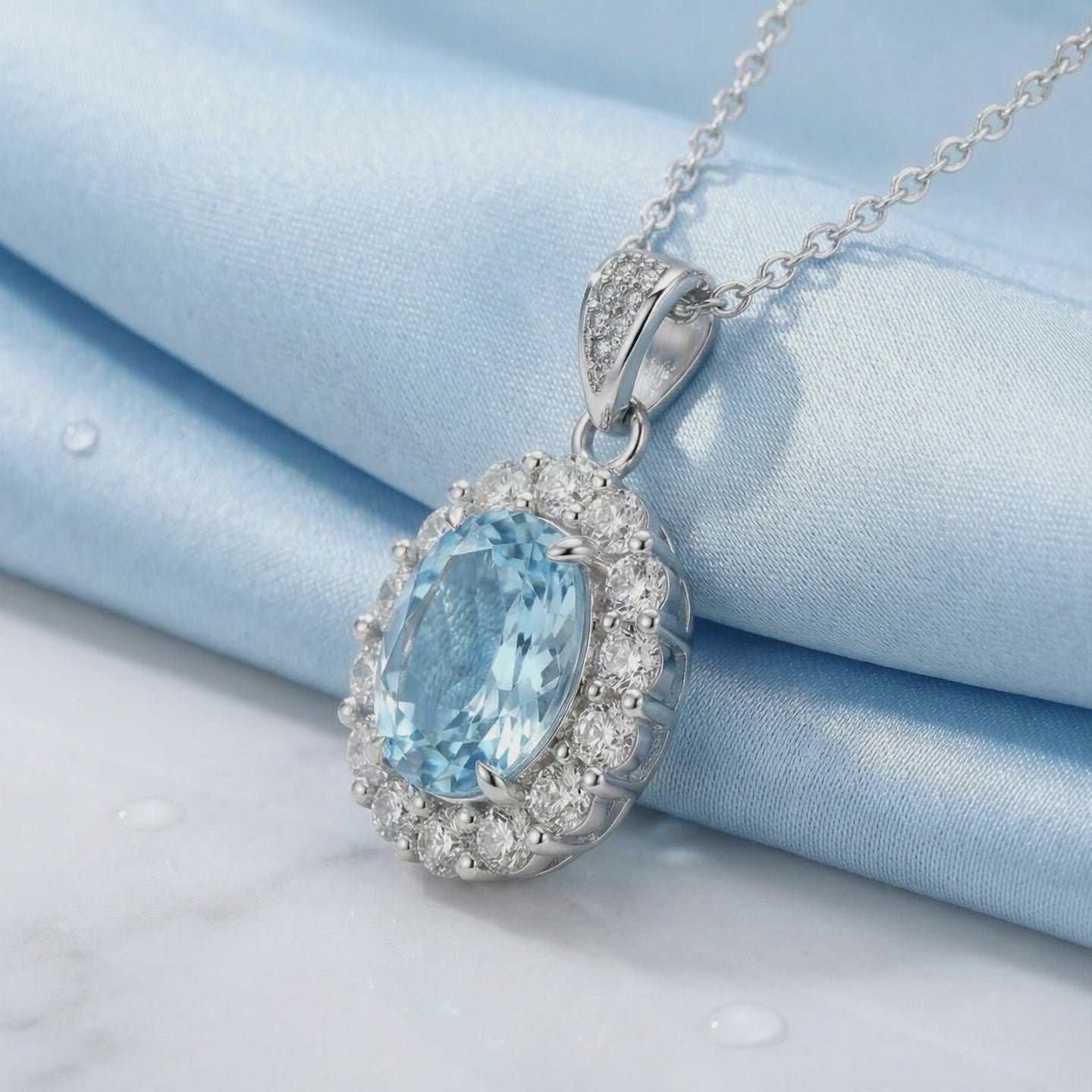 - Stone: A5 Grade Simulated Aquamarine (March Birthstone)