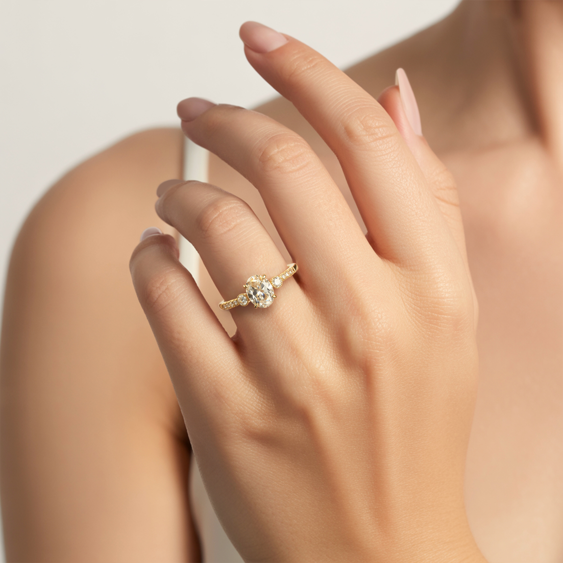 This ring isn't just jewelry; it's a profound moment she'll cherish forever. The Luna 1CT Oval Cut Moissanite Ring captures devotion, offering a brilliant, elegant sparkle that's just right. It's the ideal size for everyday wear, turning heads with its sophisticated presence without ever feeling excessive.