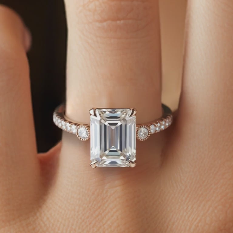 Give her the stars, and watch her eyes light up brighter than The Luna itself. Choose The Luna Emerald Cut Moissanite Ring today – a promise, a tiny universe of love she can wear every day.