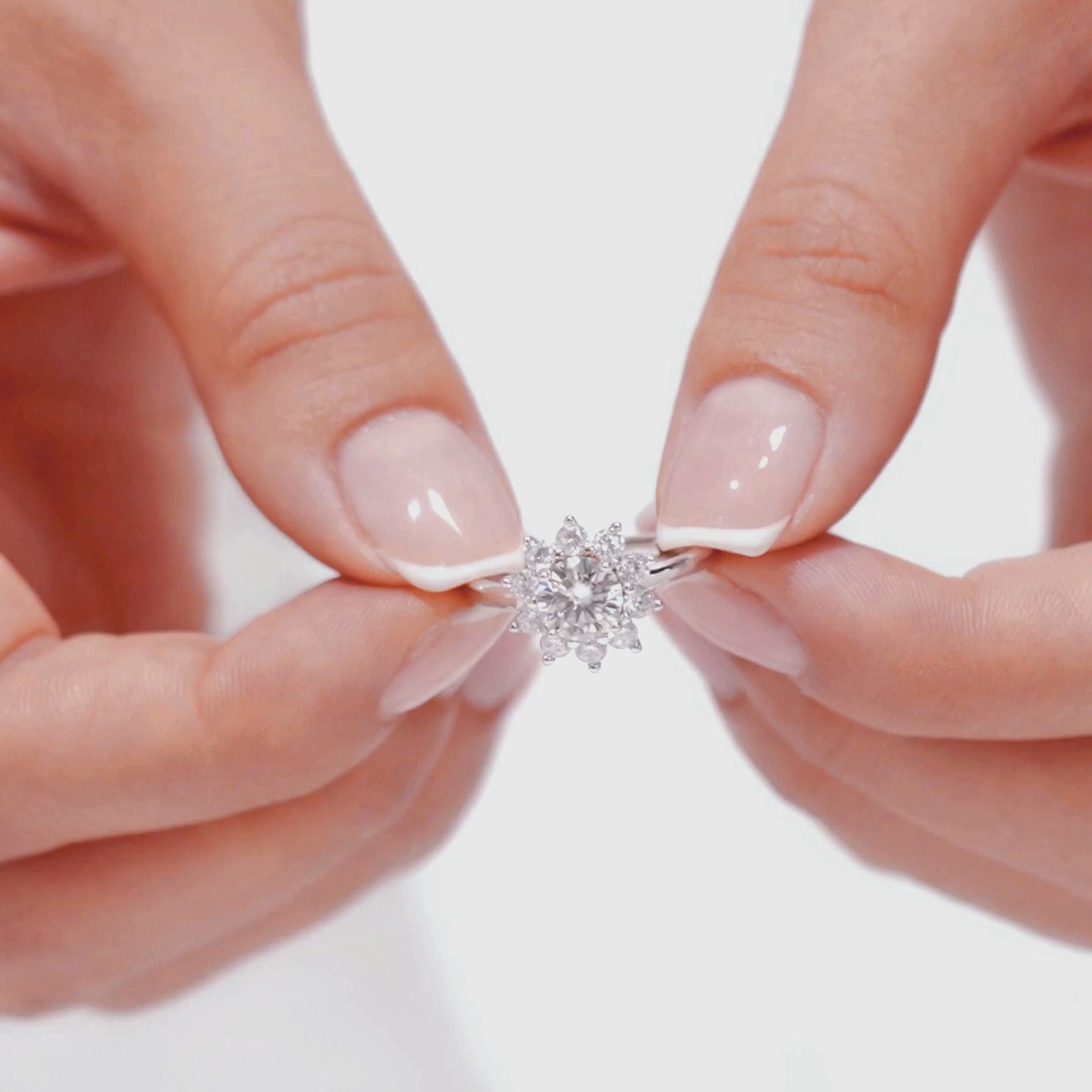 The radiant brilliance of The Lustrous shines through its round-cut moissanite gemstone, carefully set to reflect every glimmer of light. The unique floral crown design adds a touch of classic beauty, making it perfect for engagements, special gifts, or a statement of self-love.