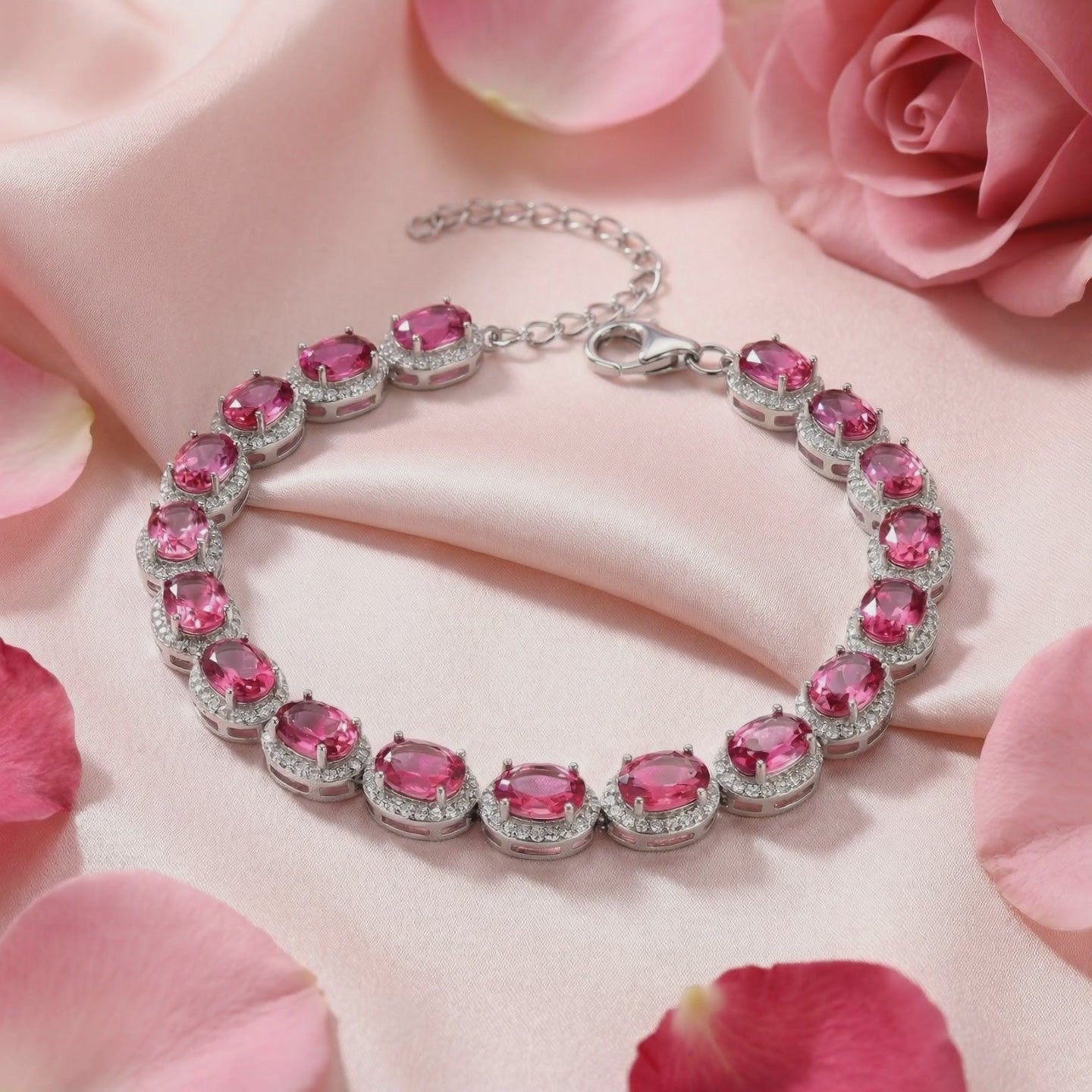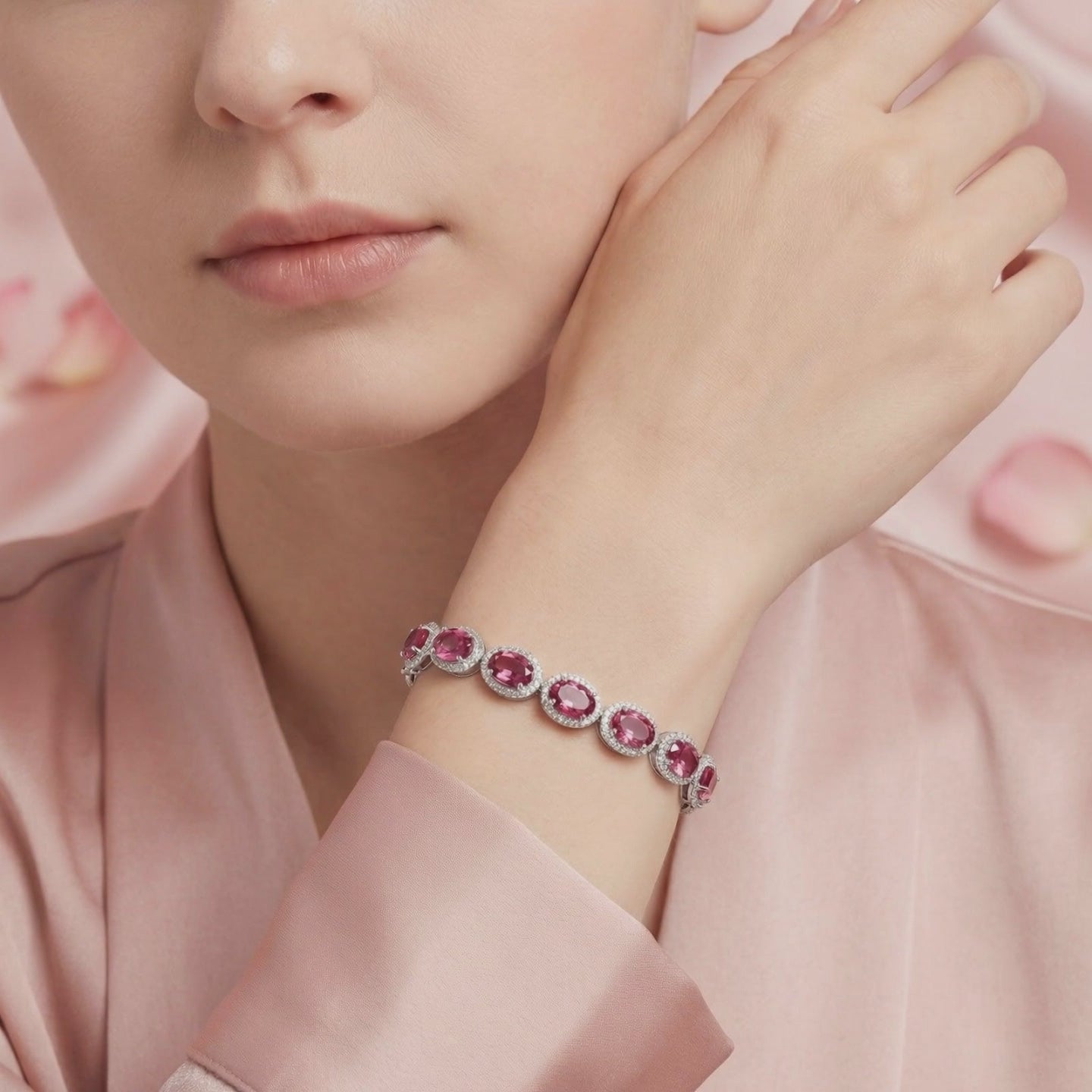 Each oval stone is protected by a precision-engineered halo setting, designed to maximize light return while maintaining a low profile that resists snagging on knitwear or delicate fabrics. Constructed in Solid 925 Sterling Silver and finished with a heavy Rhodium layer, this tennis bracelet is built for the grind of daily life—resisting tarnish and maintaining its fire even through hand washing and daily activity.
