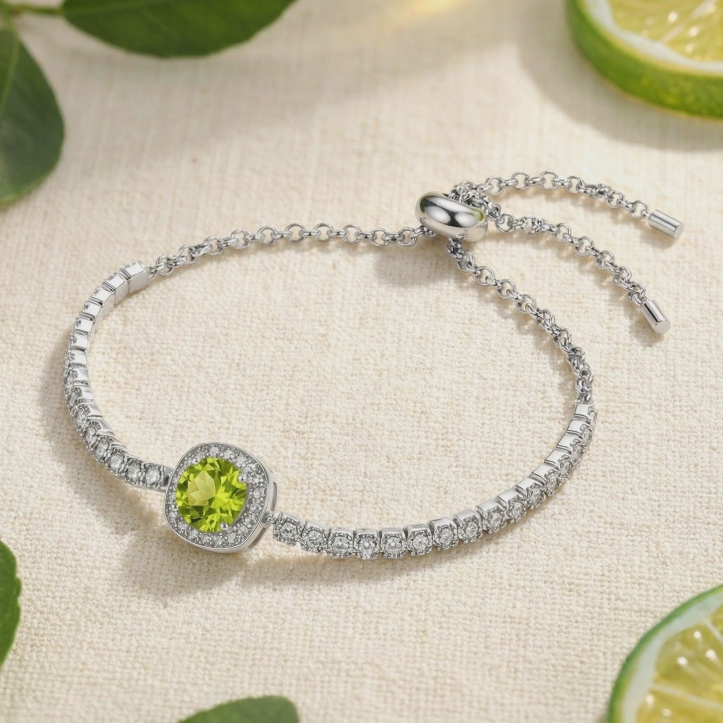 Natural peridots are often inconsistent in color and clarity. This August birthstone bracelet features a Simulated Peridot, precision-engineered to match the vibrant yellow-green brilliance of a museum-grade stone. Each stone is color-calibrated for flawless saturation, delivering the exact visual physics of a top-tier heirloom without the mining markup.