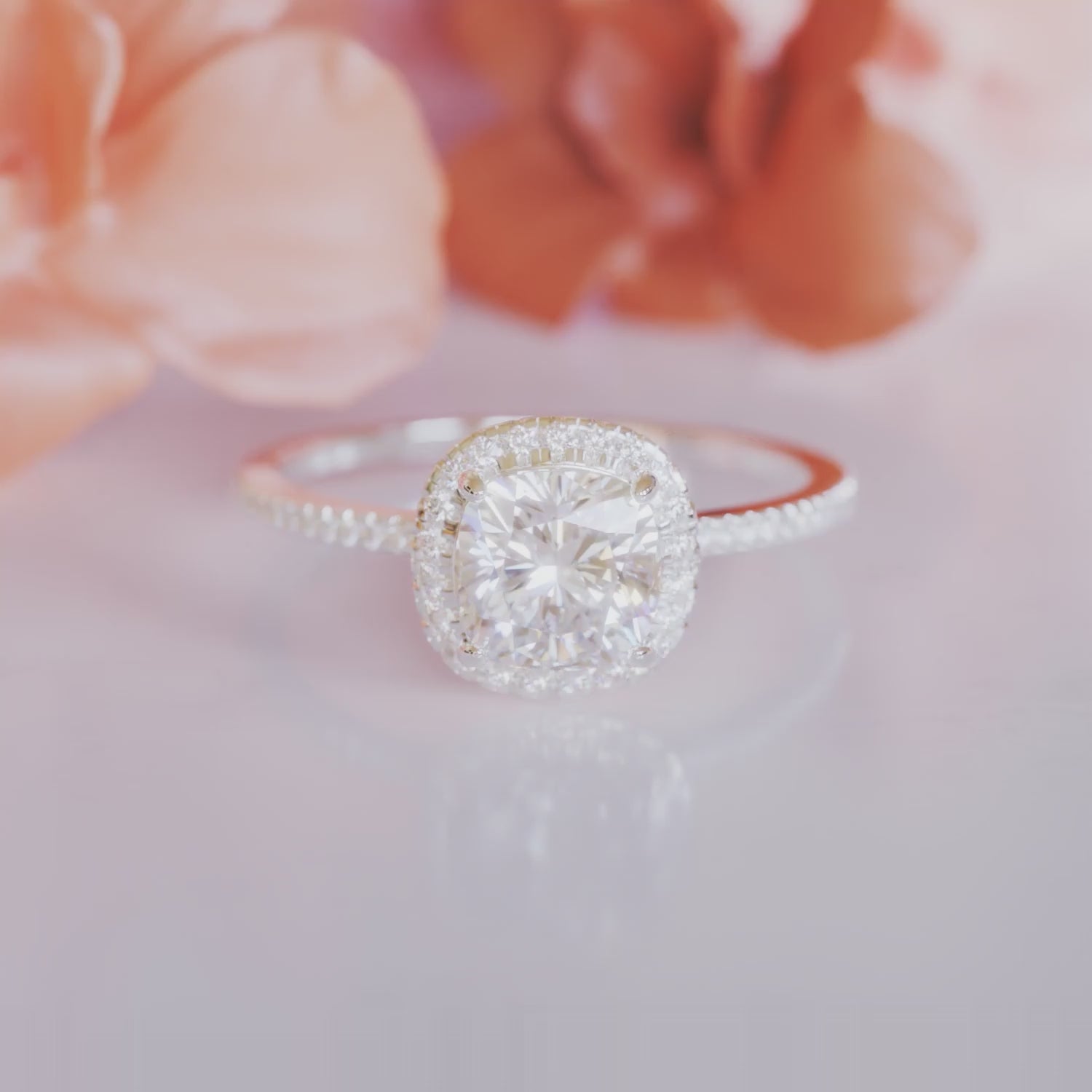 The Maria: 1CT Cushion Cut Moissanite Halo Ring
