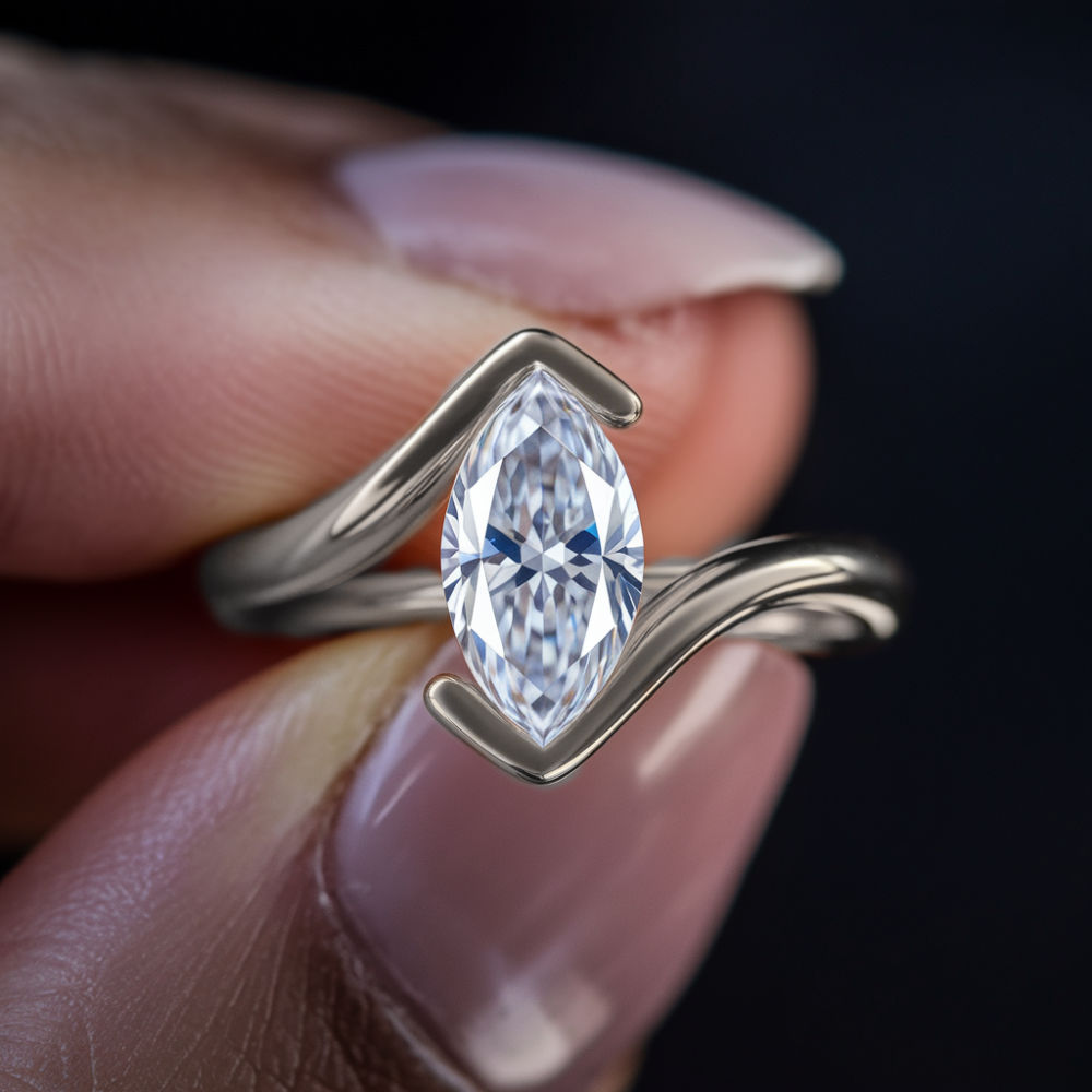- Stone Cut: Ideal Marquise Cut Moissanite Stone