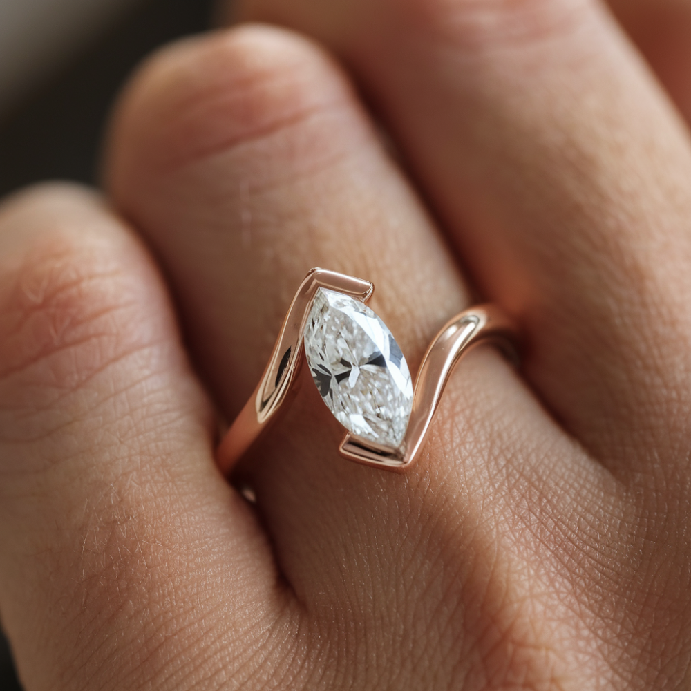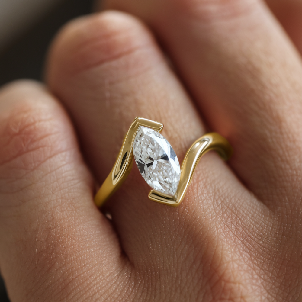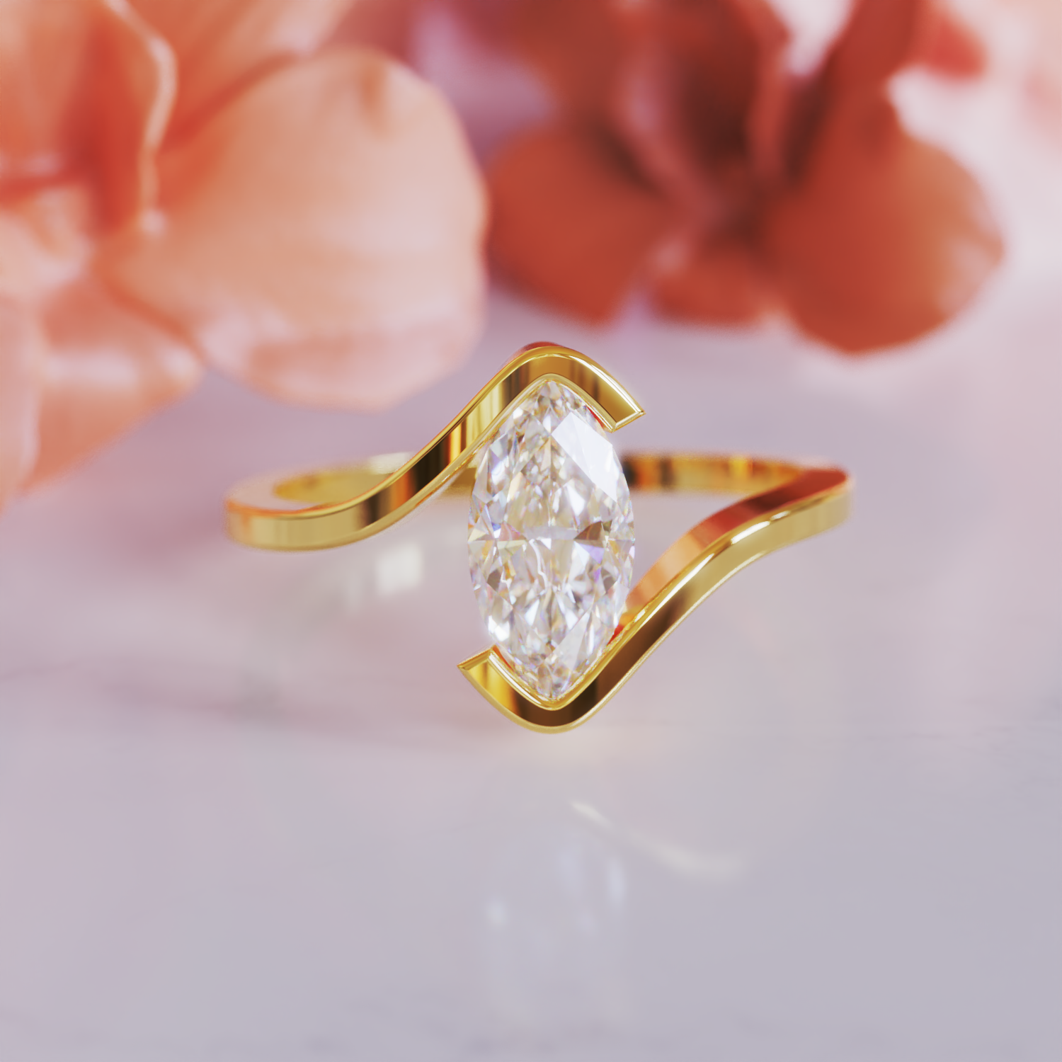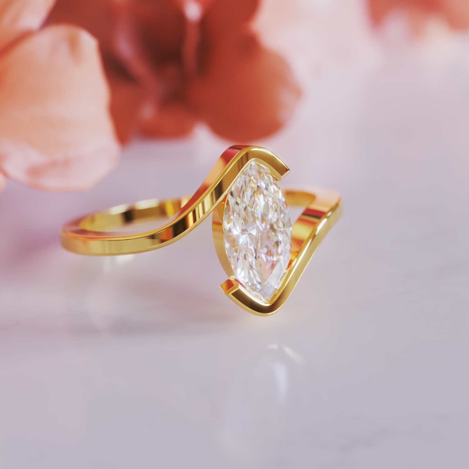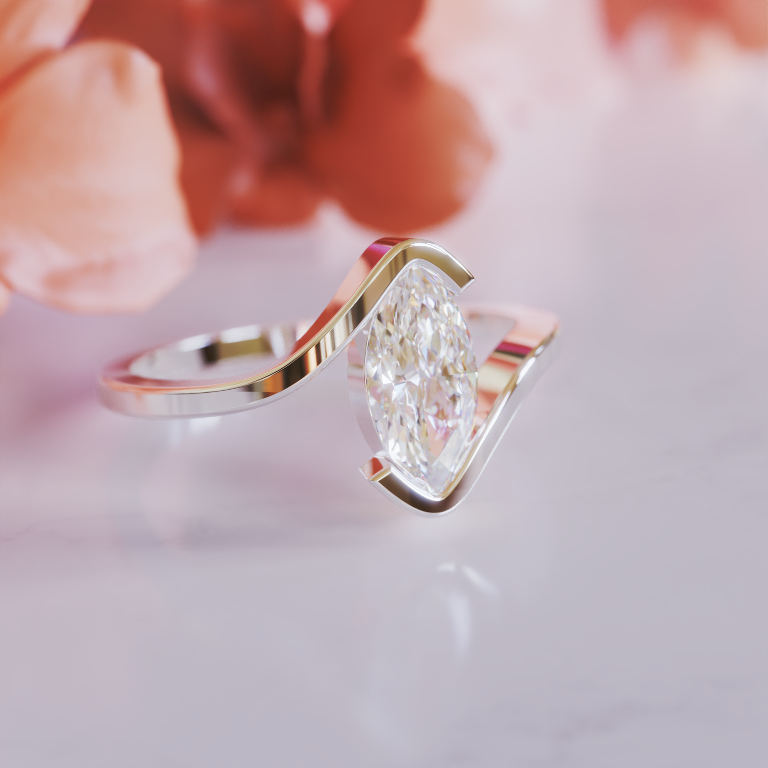 Introducing "The Marquise," an elegant ring crafted for those who appreciate the refined allure of classic design with a contemporary twist. Featuring a 1CT Ideal Marquise Cut moissanite, this north-south bezel setting showcases the stone's elongated shape, adding sophistication and grace to your hand.