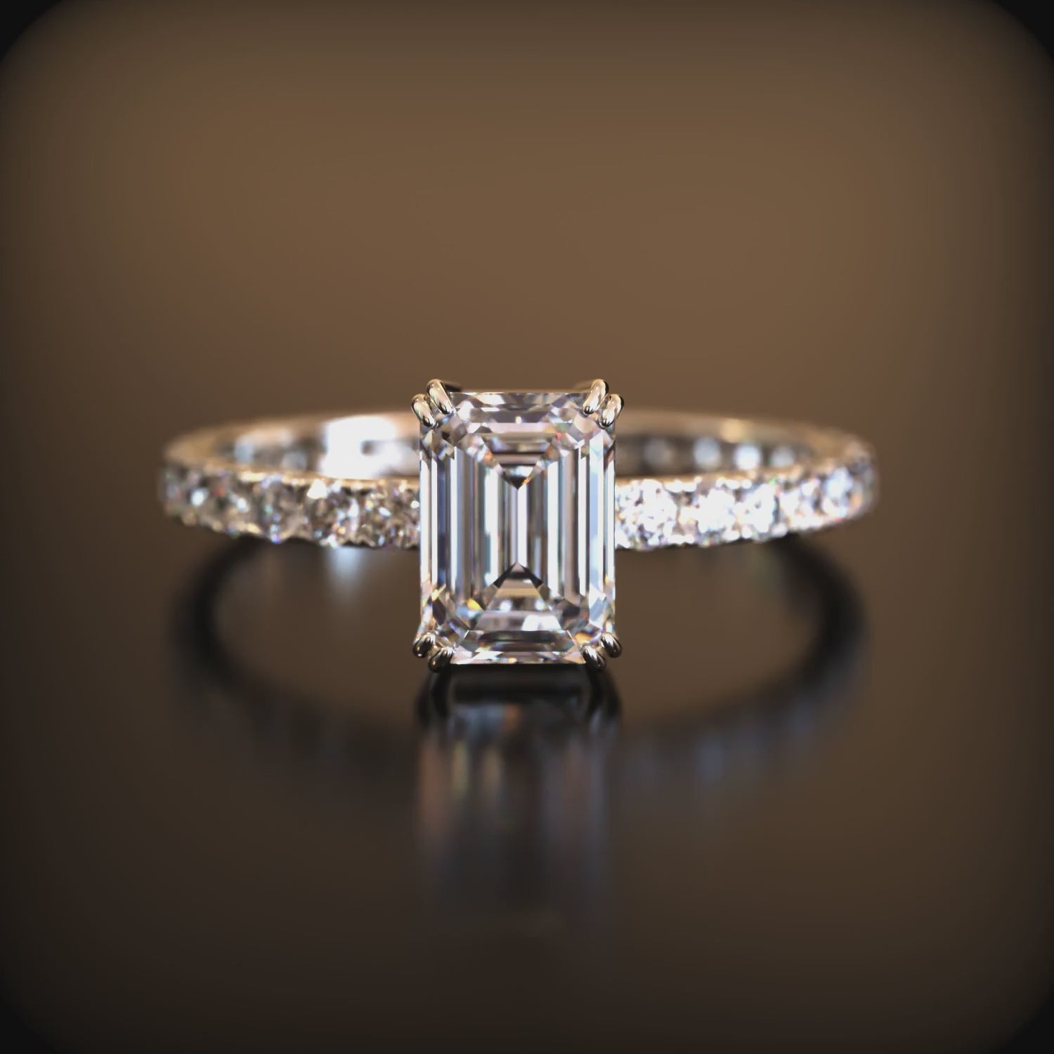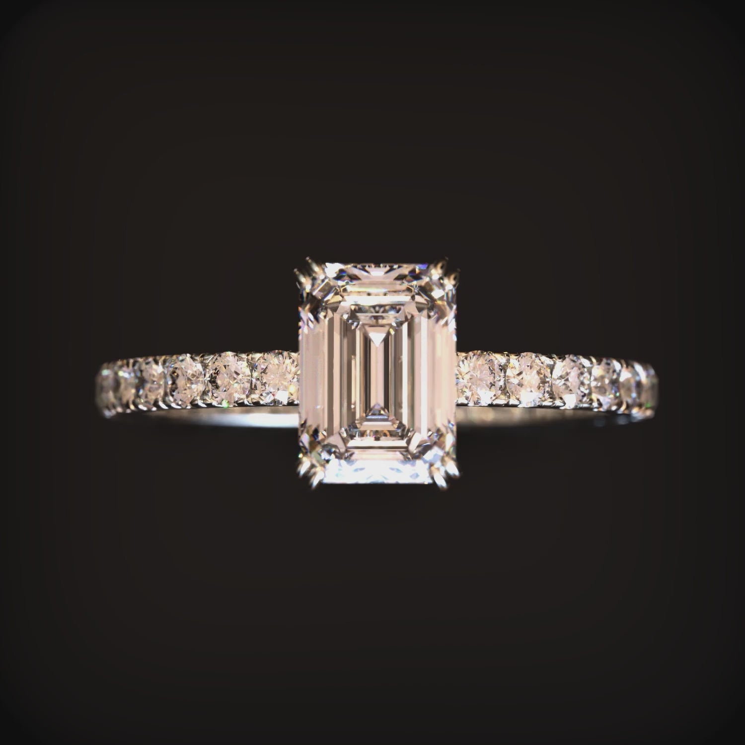 - CT Size: The Millie Grace features a 1CT Emerald Cut Moissanite Gemstone. The side stones are round shape moissanites. We accept custom requests if you wish for a different CT size. Check the details above for specifics on this ring.