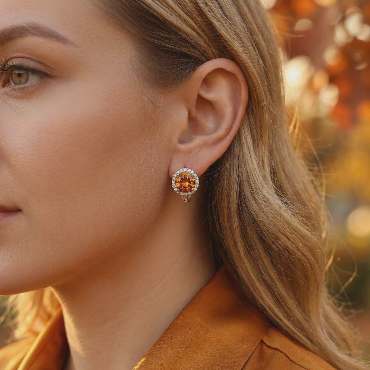Mined topaz often lacks the fire and durability required for high-impact daily jewelry. These halo earrings solve the problem by using precision-cut Moissanite, color-calibrated to the ideal honeyed warmth of a museum-grade November birthstone. With a refractive index of 2.65, they bend light more aggressively than mined diamond, ensuring your jewelry never looks dull or cloudy.