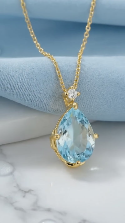 Mined aquamarine is often too pale or clouded with inclusions. This teardrop pendant features a Simulated Aquamarine, color-calibrated to the ideal light blue saturation that nature rarely delivers with such consistency. Precision-cut from A5 Grade material, this stone is engineered for maximum light return and brilliance.