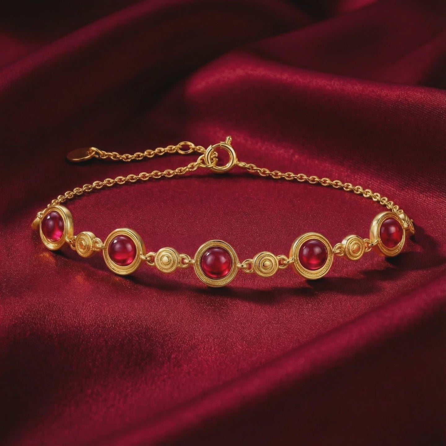 Mined rubies are frequently cloudy and riddled with fractures that disrupt light return. We engineered the solution. This station bracelet features five precision-cut Simulated Rubies, color-calibrated to the prestigious "Pigeon Blood" red standard usually reserved for museum-grade stones. Each stone is held in a secure bezel setting, designed for a low profile that won't snag on sweaters or delicate fabrics.