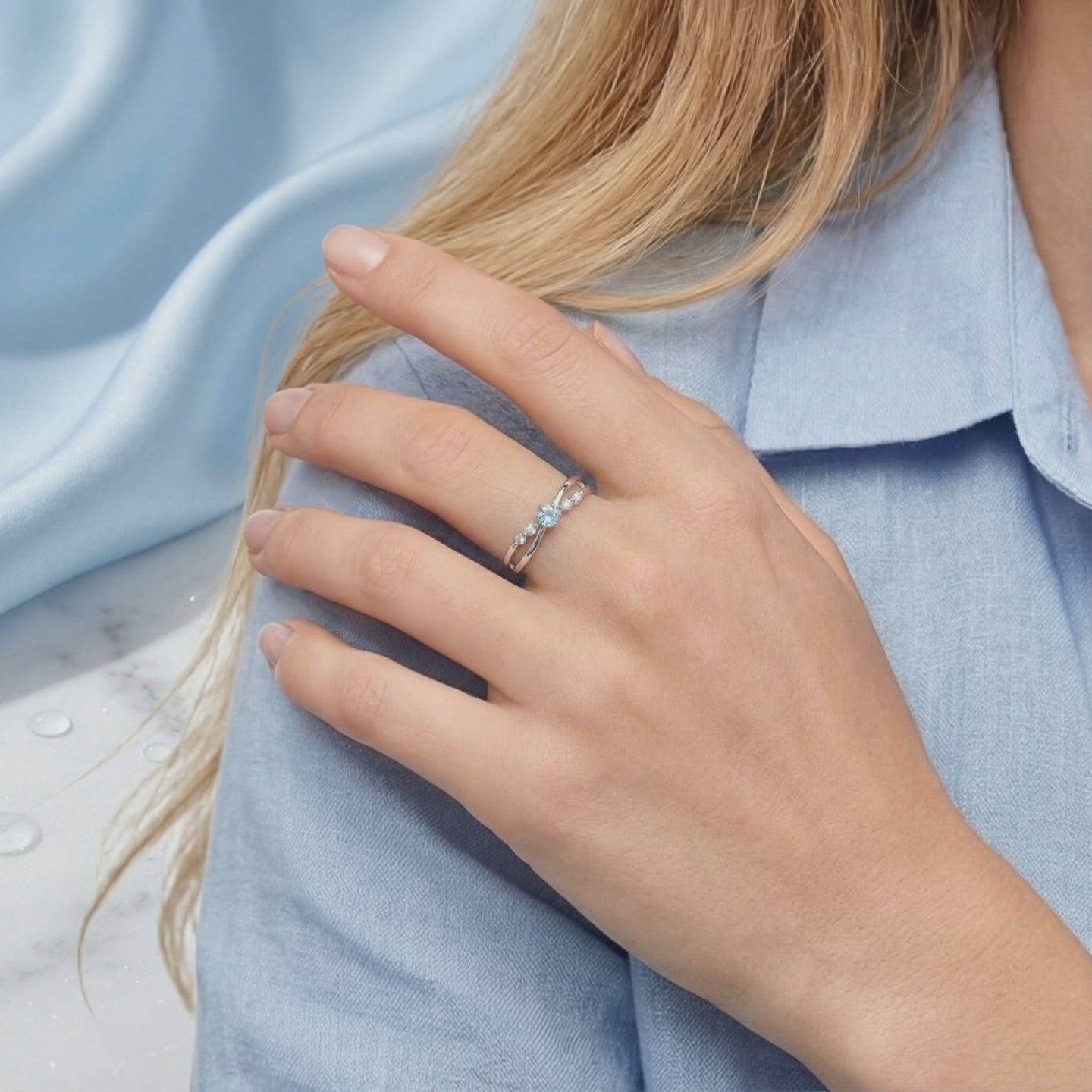 - Stone: A5 Grade Simulated Aquamarine (March Birthstone)