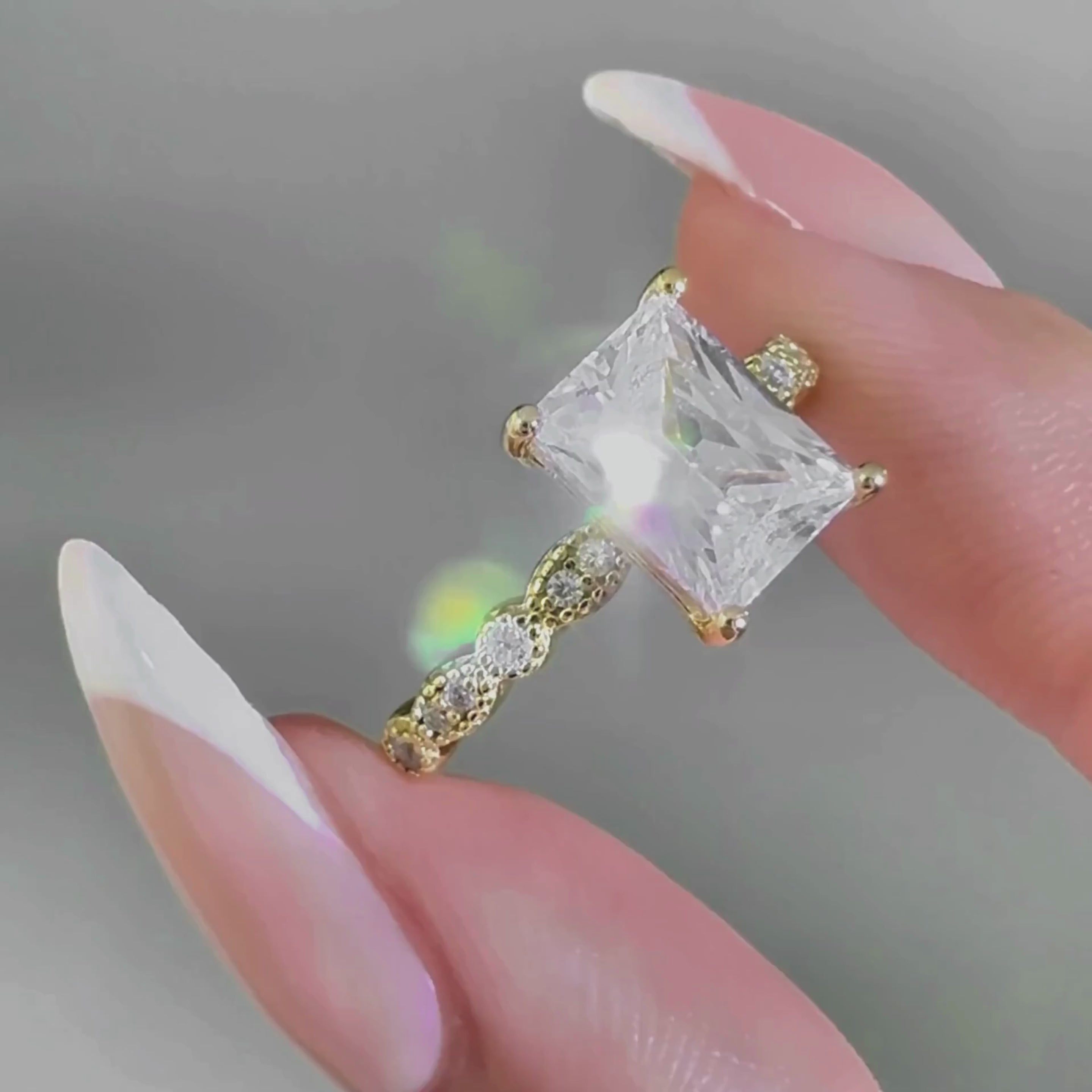 The Solace-Rose combines elegance with a touch of romance. This half-eternity classic solitaire ring is crafted from S925 sterling silver with 18k rose gold plating, featuring an emerald-cut lab grown diamond in prong and bezel settings.