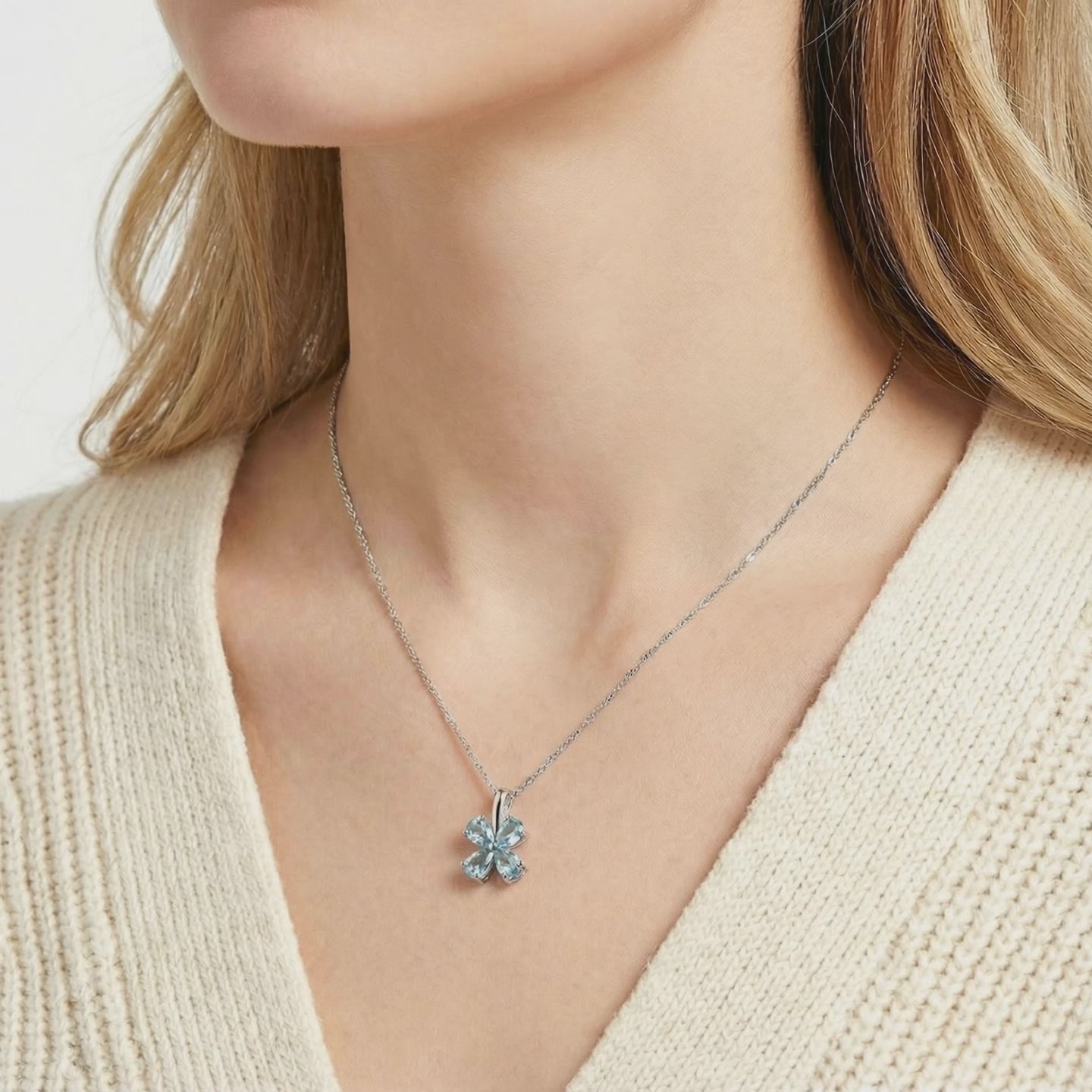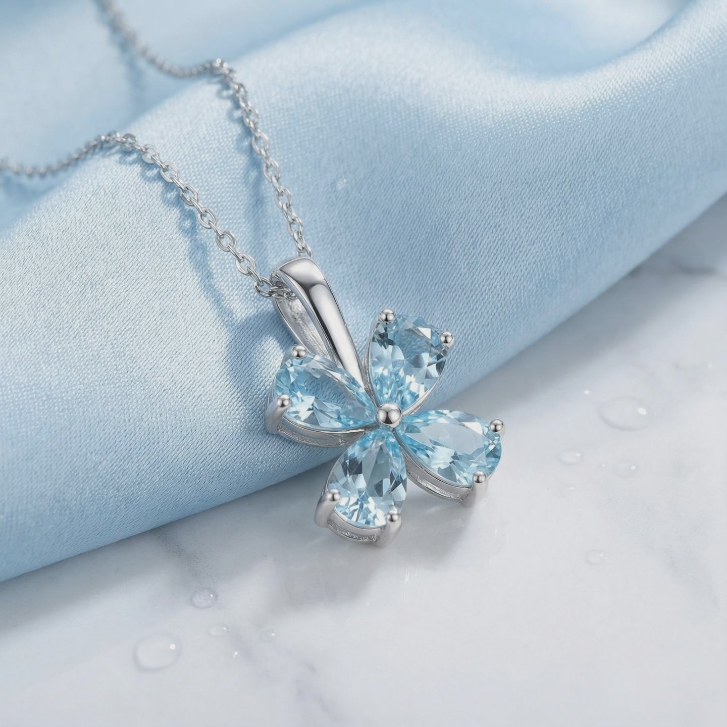 Natural aquamarine often lacks the depth of color required for high-end jewelry. This March birthstone necklace features four pear-cut Simulated Aquamarines, engineered to hit the ideal light-blue saturation mark with museum-grade clarity. Each stone is precision-faceted to maximize the refractive index, ensuring consistent brilliance from every angle.