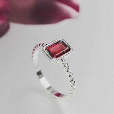 The Solitaire: Emerald-Cut Garnet Ring - S925 Sterling Silver