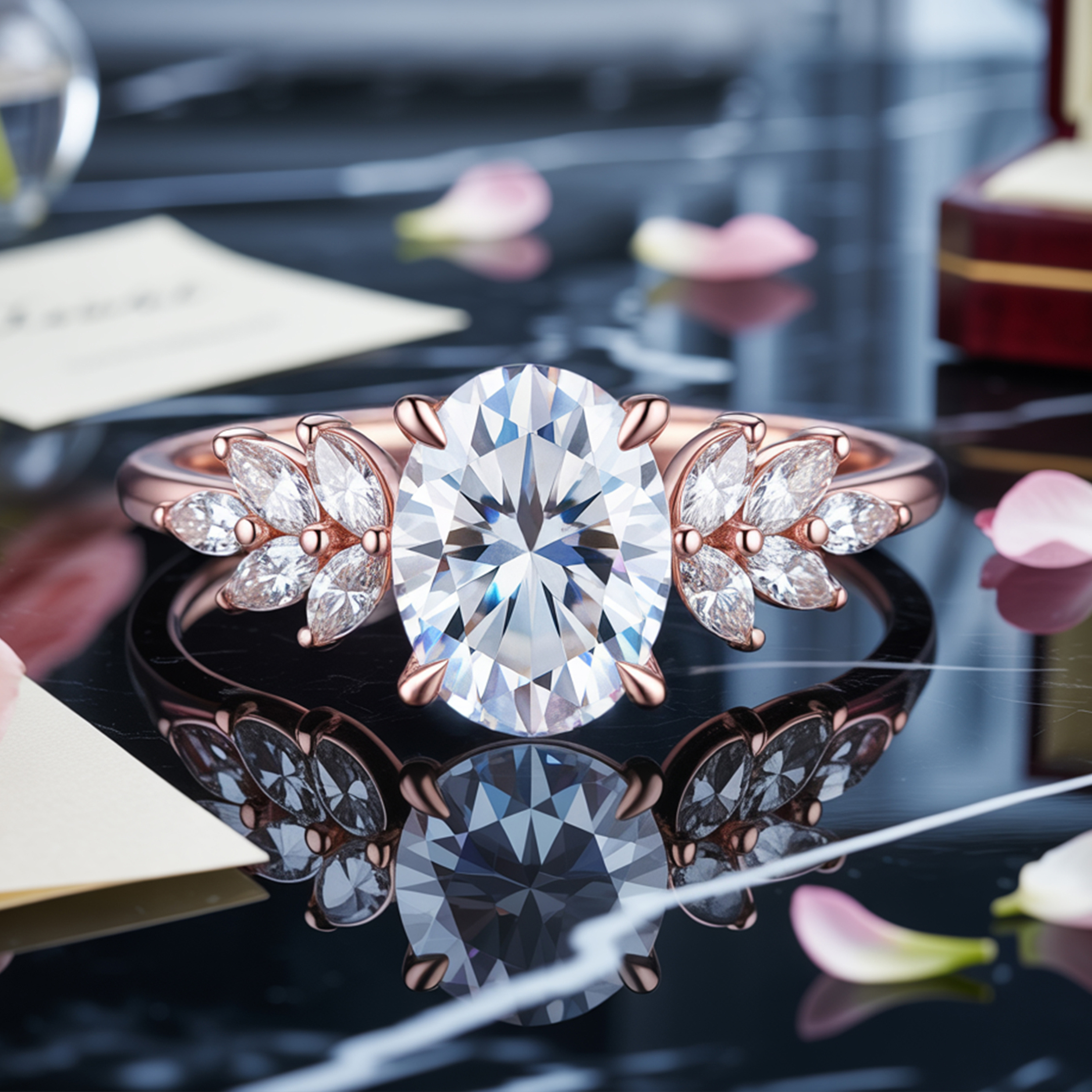 - 2CT oval cut moissanite—engineered for diamond-like brilliance and longevity
