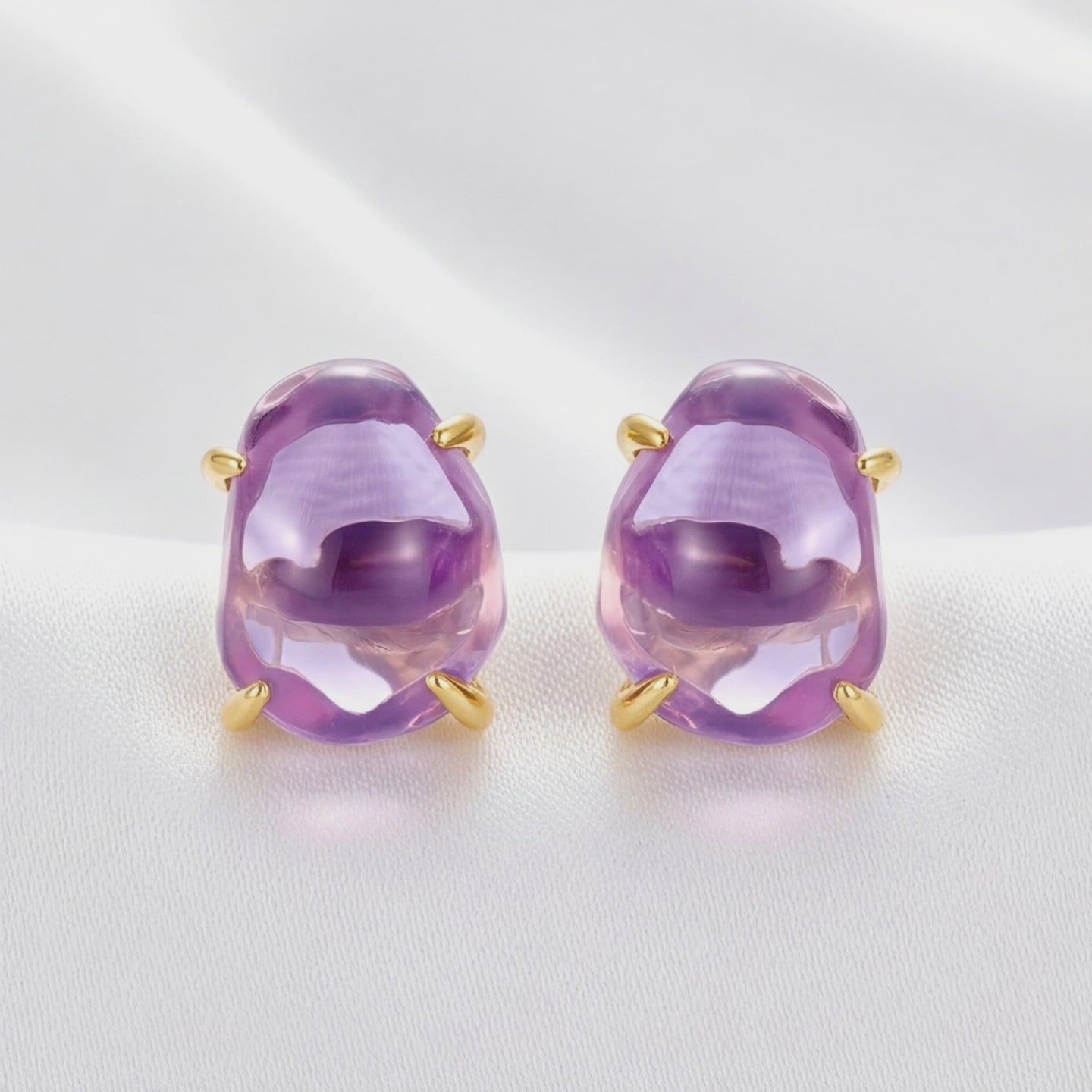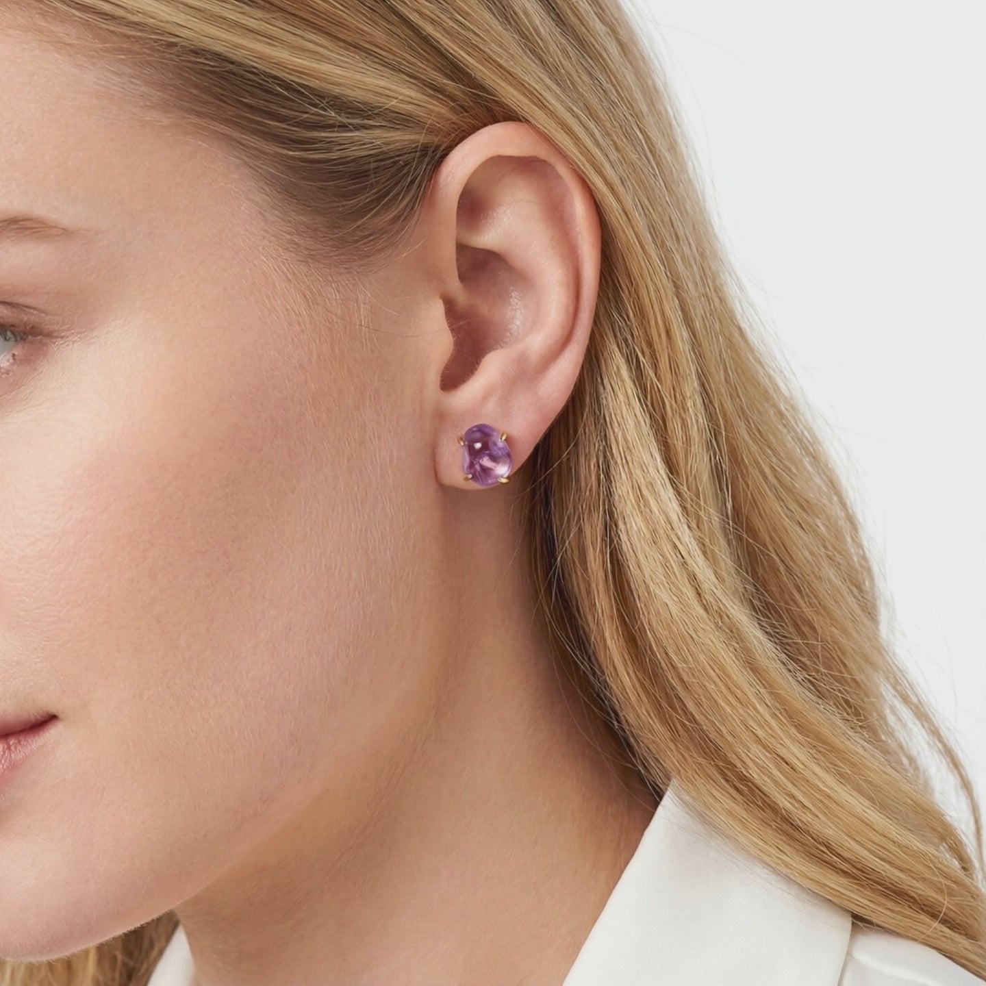 Nature rarely delivers the perfect purple. Mined amethysts are often inconsistent, showing stripes or pale zones. We engineered the solution. These stud earrings feature Simulated Amethyst, color-calibrated to the absolute ideal of deep, royal saturation. Precision-cut from A5 Grade material for maximum light return and brilliance.