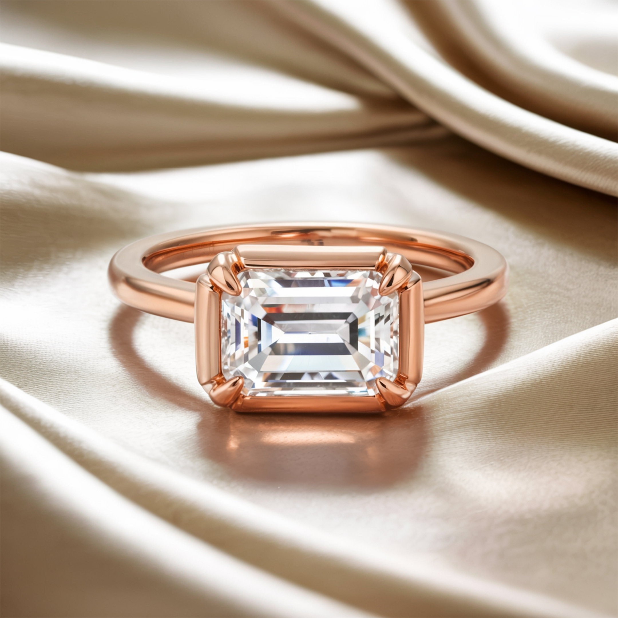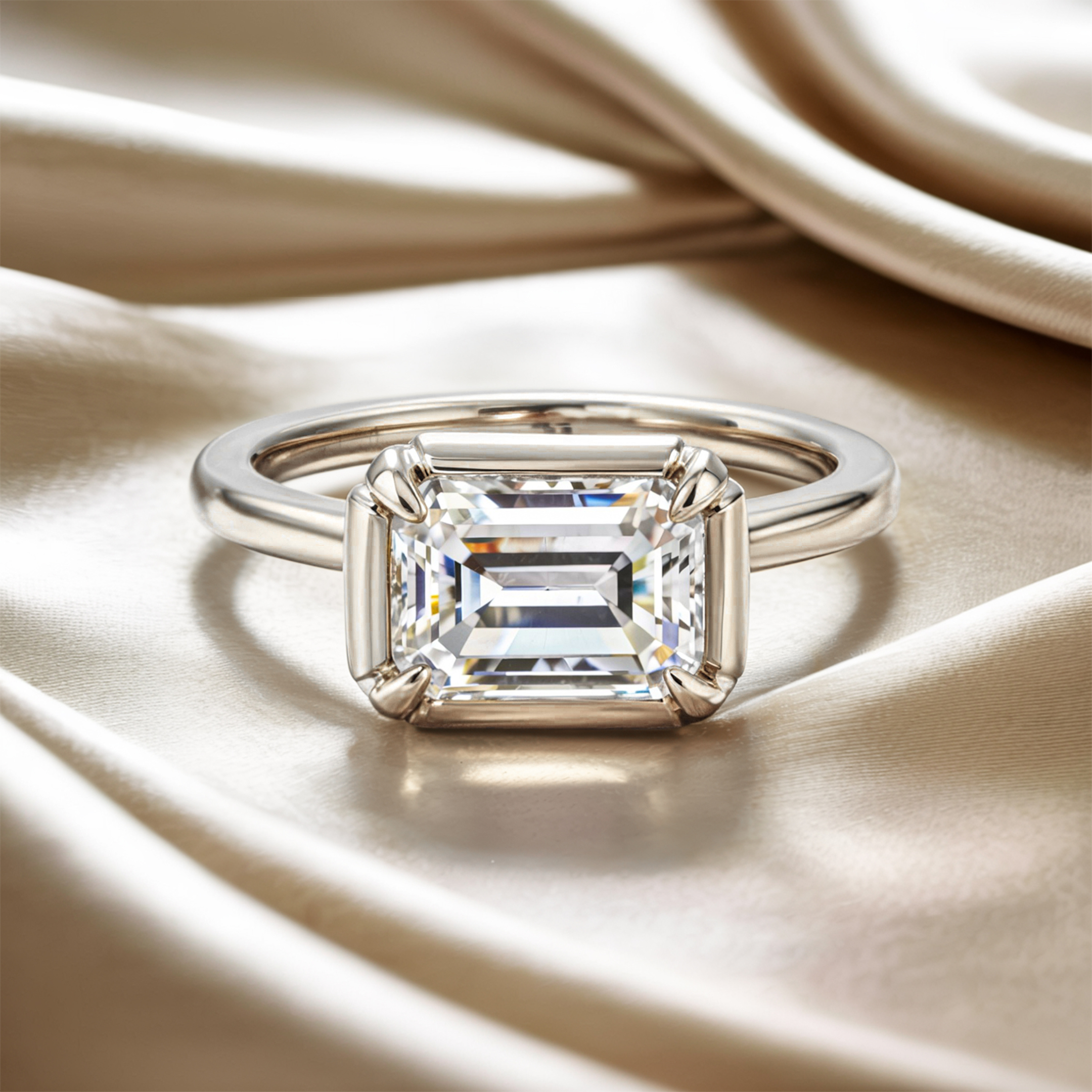 Discover a fresh perspective on timeless elegance with The Thalia. Its unique east-west setting redefines the classic emerald cut for the modern era.