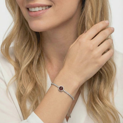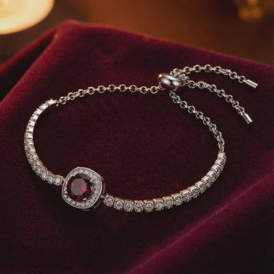 - Stone: A5 Grade Simulated Garnet (January Birthstone).