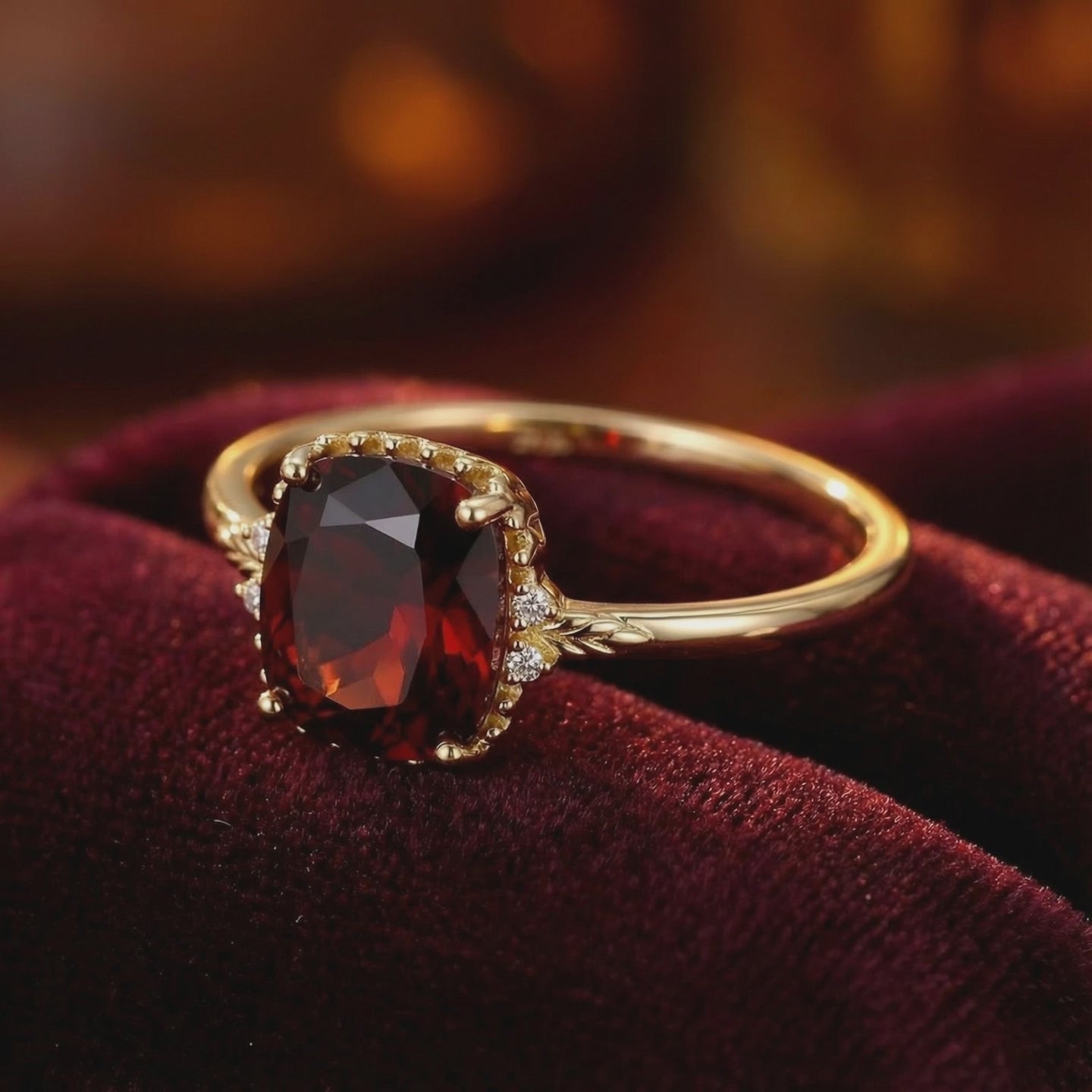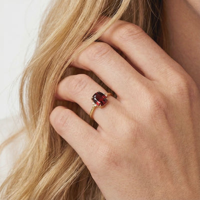 For the January born, we rejected the inconsistency of mined stones. We utilized A5 Grade material to match the ideal Pigeon Blood saturation with perfect Deep Red saturation.