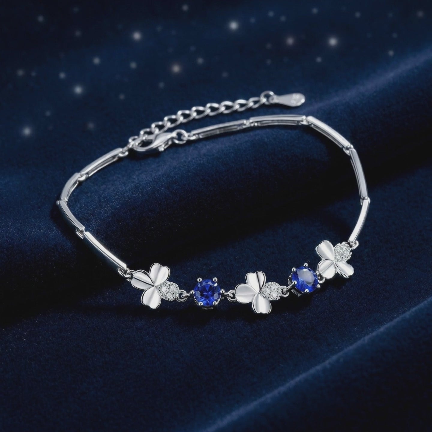 Mined sapphires often vary in saturation, frequently appearing too dark or containing visible inclusions. This September birthstone bracelet features Simulated Sapphire, color-calibrated to the museum-grade "Royal Blue" benchmark. Each stone is precision-cut from A5 Grade material for maximum light return and velvety saturation.