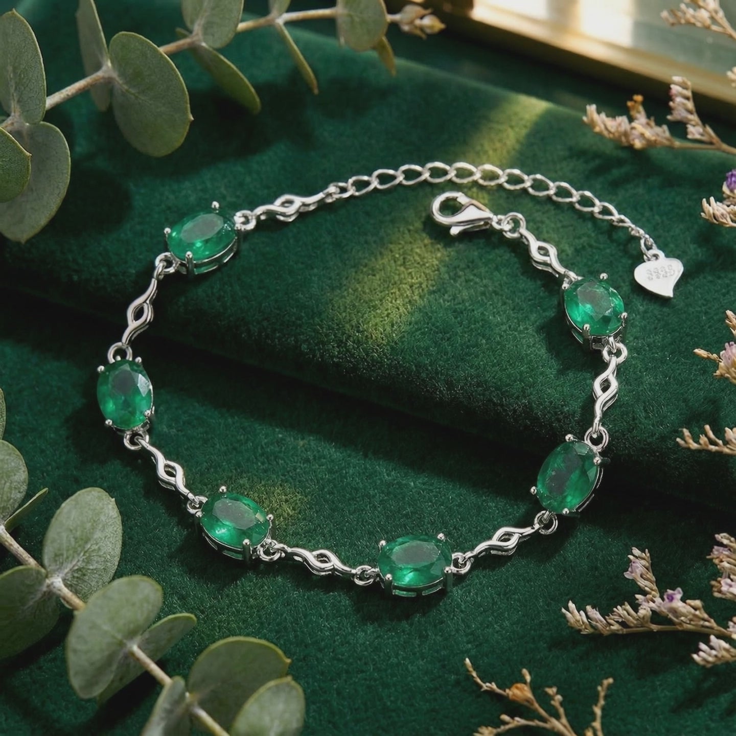 To find a natural emerald with this depth of color and flawless clarity, you would spend thousands on a museum-grade piece. This station bracelet features precision-cut Simulated Emeralds, color-calibrated to capture the ideal "Forest Green" hue that nature rarely delivers without cracks or inclusions.