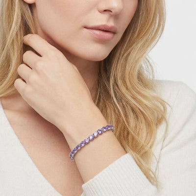Nature rarely produces 40 identical stones. We engineered the perfection. This tennis bracelet features Simulated Amethysts, color-calibrated to achieve a deep, saturated purple usually reserved for museum-grade collections. Each stone is precision-cut for maximum light return, ensuring a consistent fire that mined gems often lack.