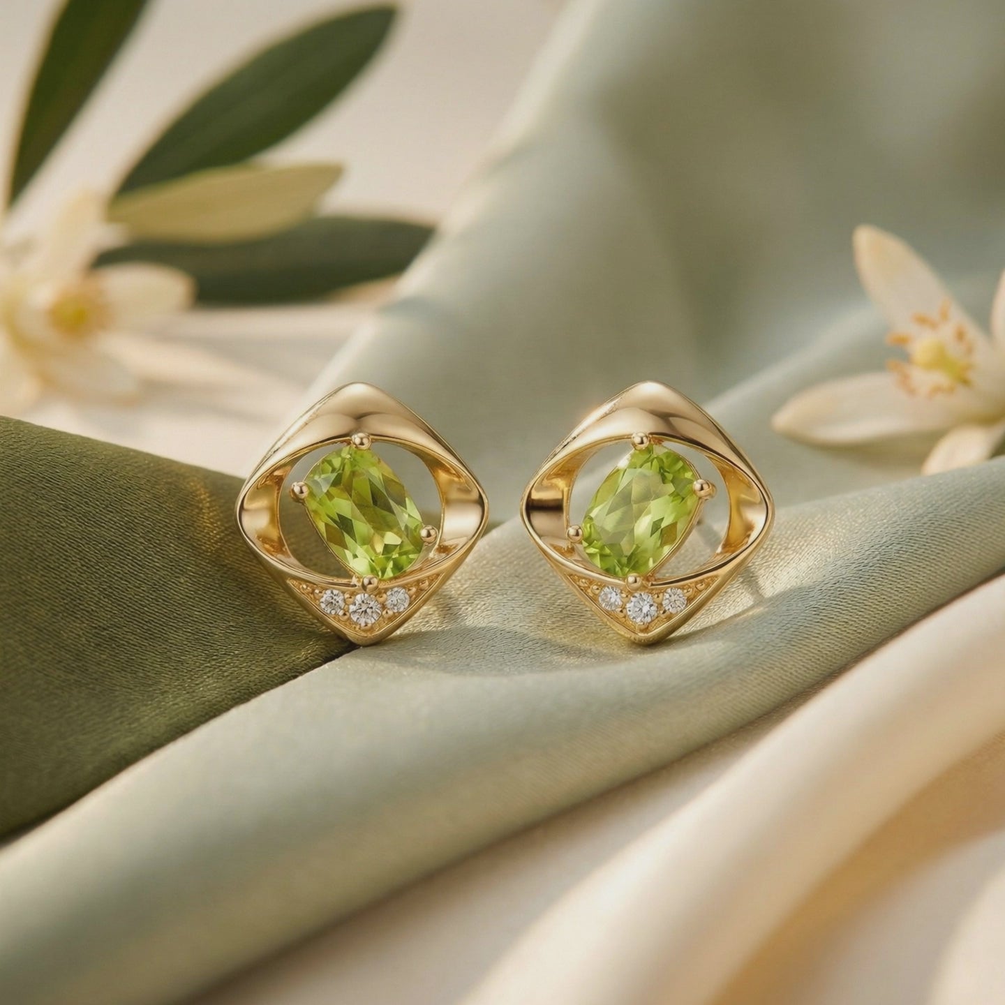 We hand-select every gemstone for deep, saturated olive-green hues with the electric lime glow the ancients called the "Evening Emerald," then precision-facet each stone to maximize light return and eliminate windowing. You see the difference the moment it catches light — day or night.