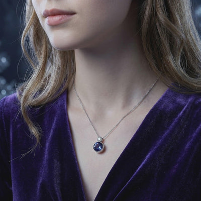 Nature rarely delivers the perfect hue consistently. Mined tanzanite often lacks the intense depth required for heirloom-quality jewelry. Our Simulated Tanzanite is engineered to replicate the coveted deep blue-violet profile with trichroic shifting tones. This necklace features a precision-cut round center stone calibrated for maximum light return and optical supremacy.