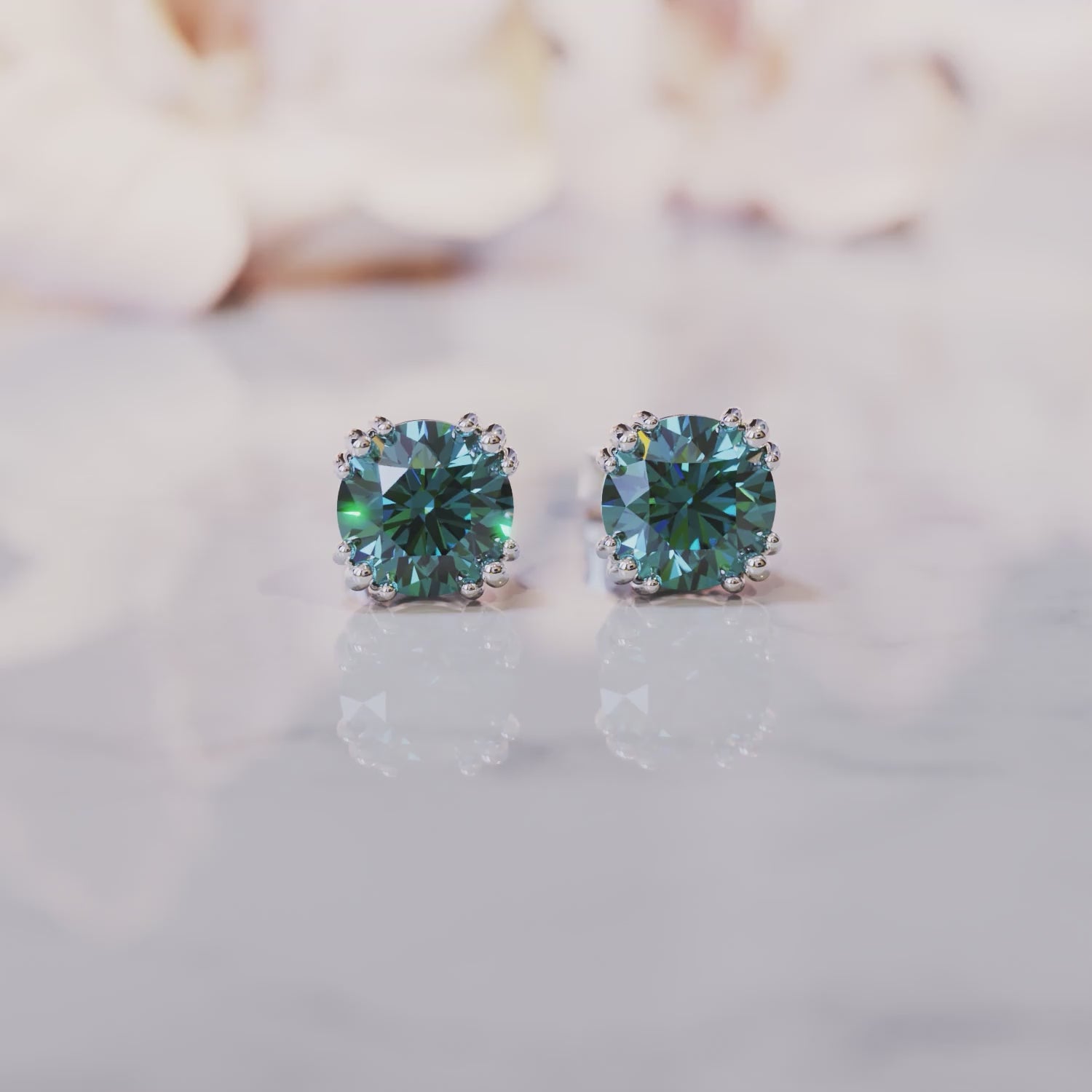 The Daphne earrings feature lab-created Alexandrite gems — mysterious and captivating with their color-changing beauty. From cool blue to violet hues, they shimmer with emotion, elegance, and quiet power.