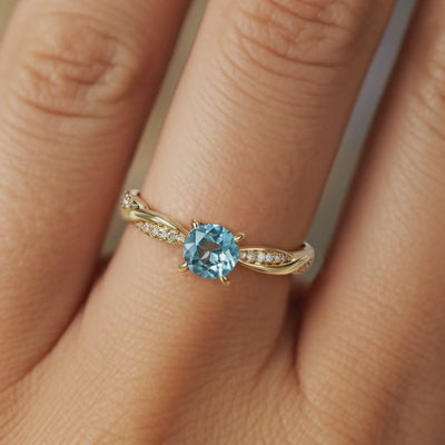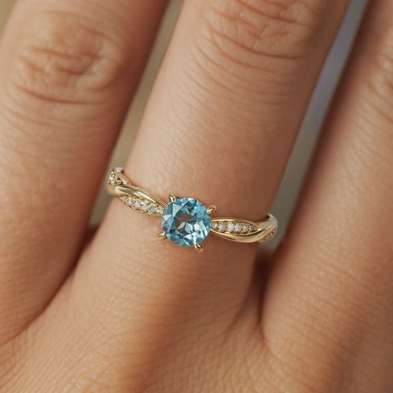 Modern Twist. Smart Price. This isn't your typical solitaire. Our twisted band design takes the classic 1CT round moissanite and gives it an edge—literally. The stunning blue hue of the center stone evokes the mesmerizing beauty of the ocean depths, captivating eyes and starting conversations, while the VVS clarity delivers more fire than any diamond.