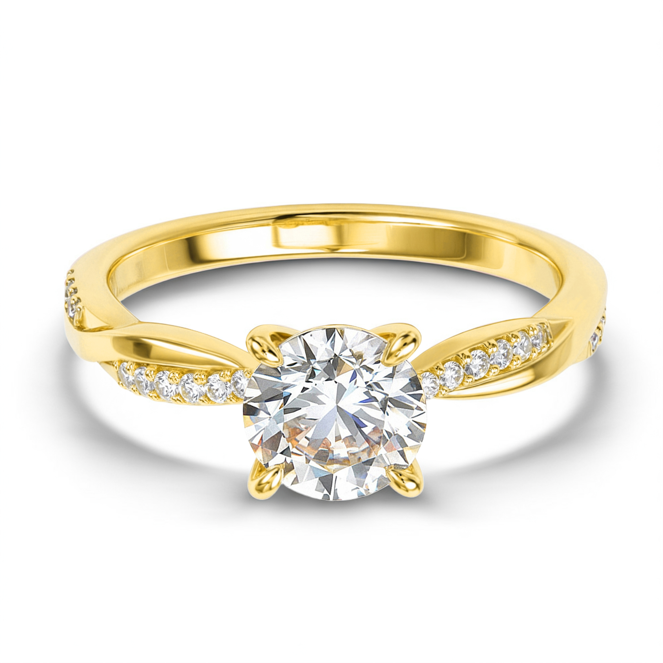This isn't just an upgrade; it's a statement. Our twisted band design takes the classic round moissanite and gives it an edge – literally – now with an even more impressive 2CT center stone. The result? A ring that catches every single light beam, guaranteeing a wow moment. Its D-color, VVS clarity center stone delivers more fire than any diamond, now with double the presence that turns heads when you enter the room.